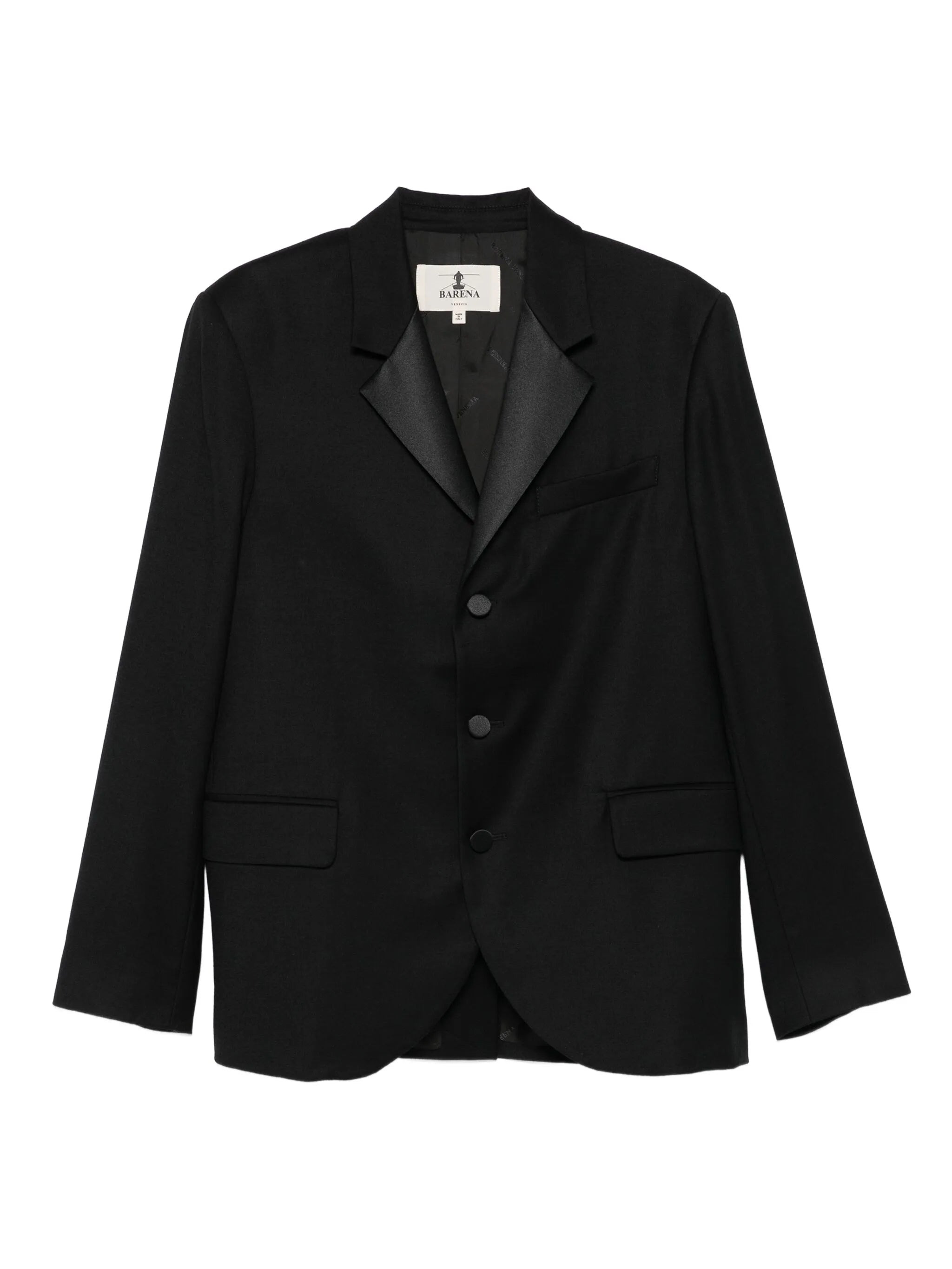 black satin lapel three buttons flap pockets long sleeves - Color: BLACK - Made in: Bangladesh - Designer Style ID: 0482 GID5316 590 Composition and care Fabric: 100.0%