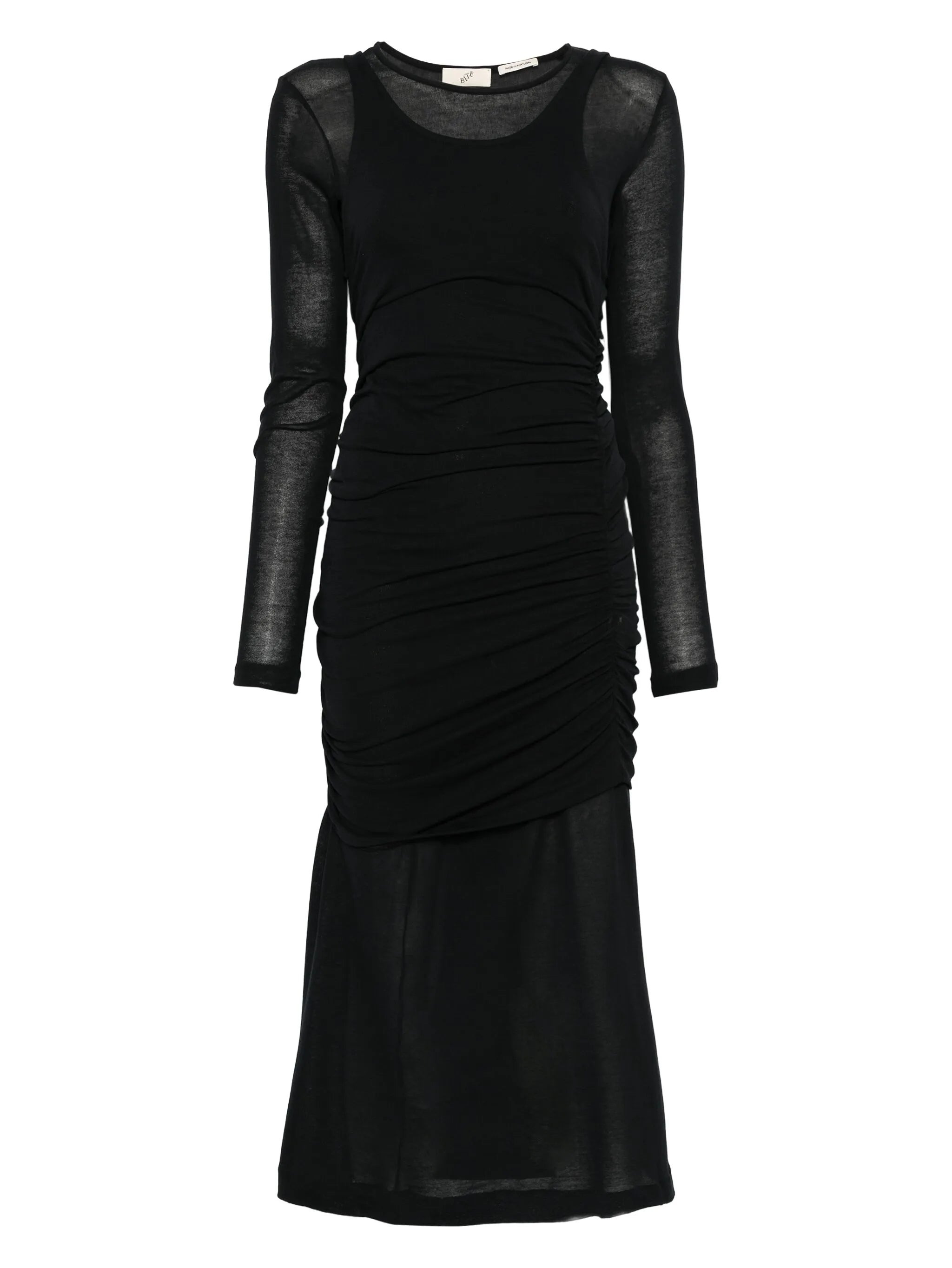 black gathered detail layered design long sleeves round neck midi length - Color: BLACK - Made in: Portugal - Designer Style ID: 114978 0999 Composition and care Cotton: 100.0%