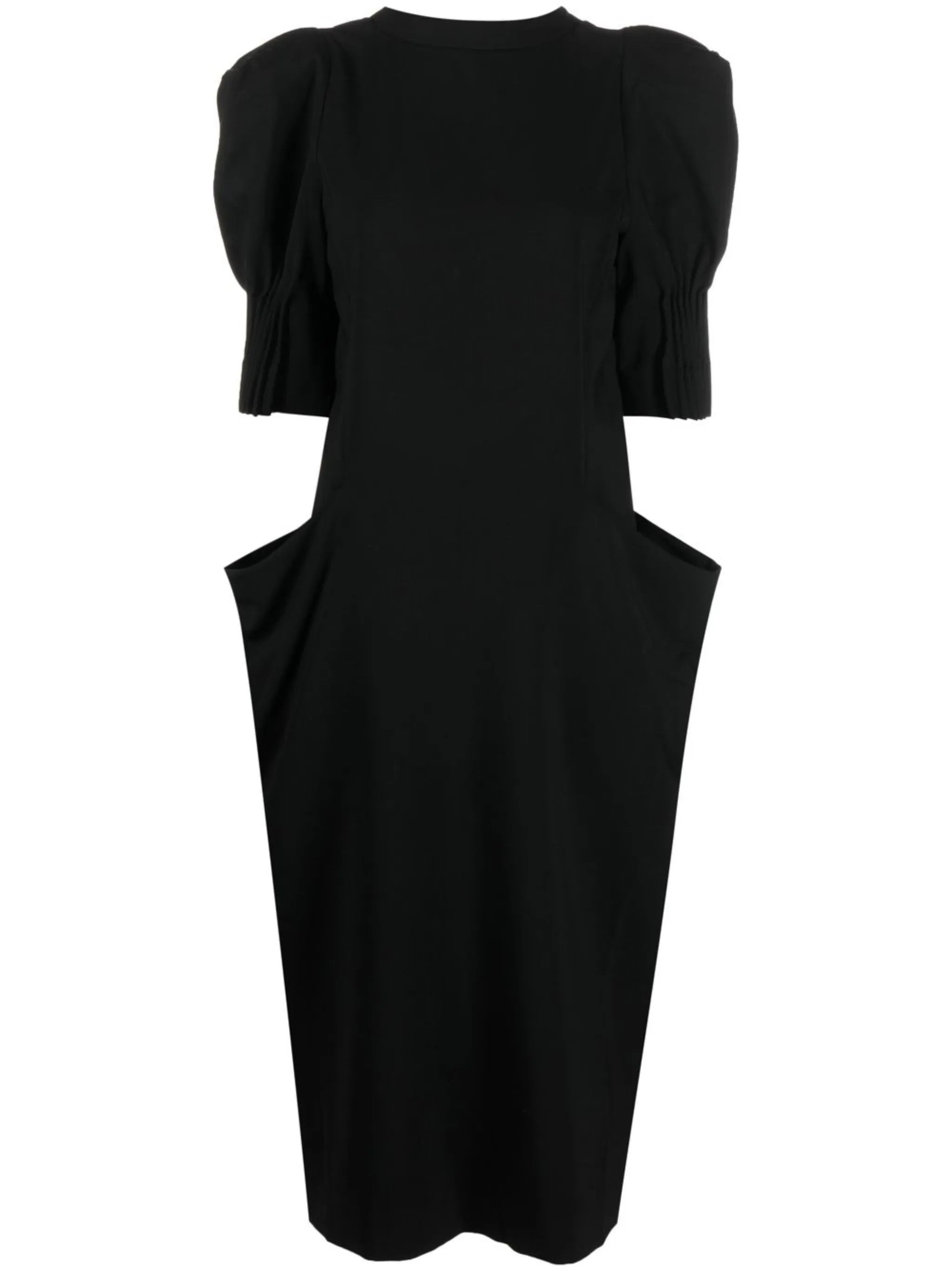 black wool blend mock neck V-back short puff sleeves two side patch pockets straight hem mid-length - Color: BLACK - Made in: Portugal - Designer Style ID: 1141576 0999 Composition and care Outer Composition Polyamide: 2.0%, Lining Composition Cupro: 100.0%, Outer Composition Wool: 94.0%, Outer Composition Elastane: 4.0%