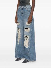 DESTROYED SUPERWIDE-LEG JEANS WITH SCALLOPED LACE DETAILS