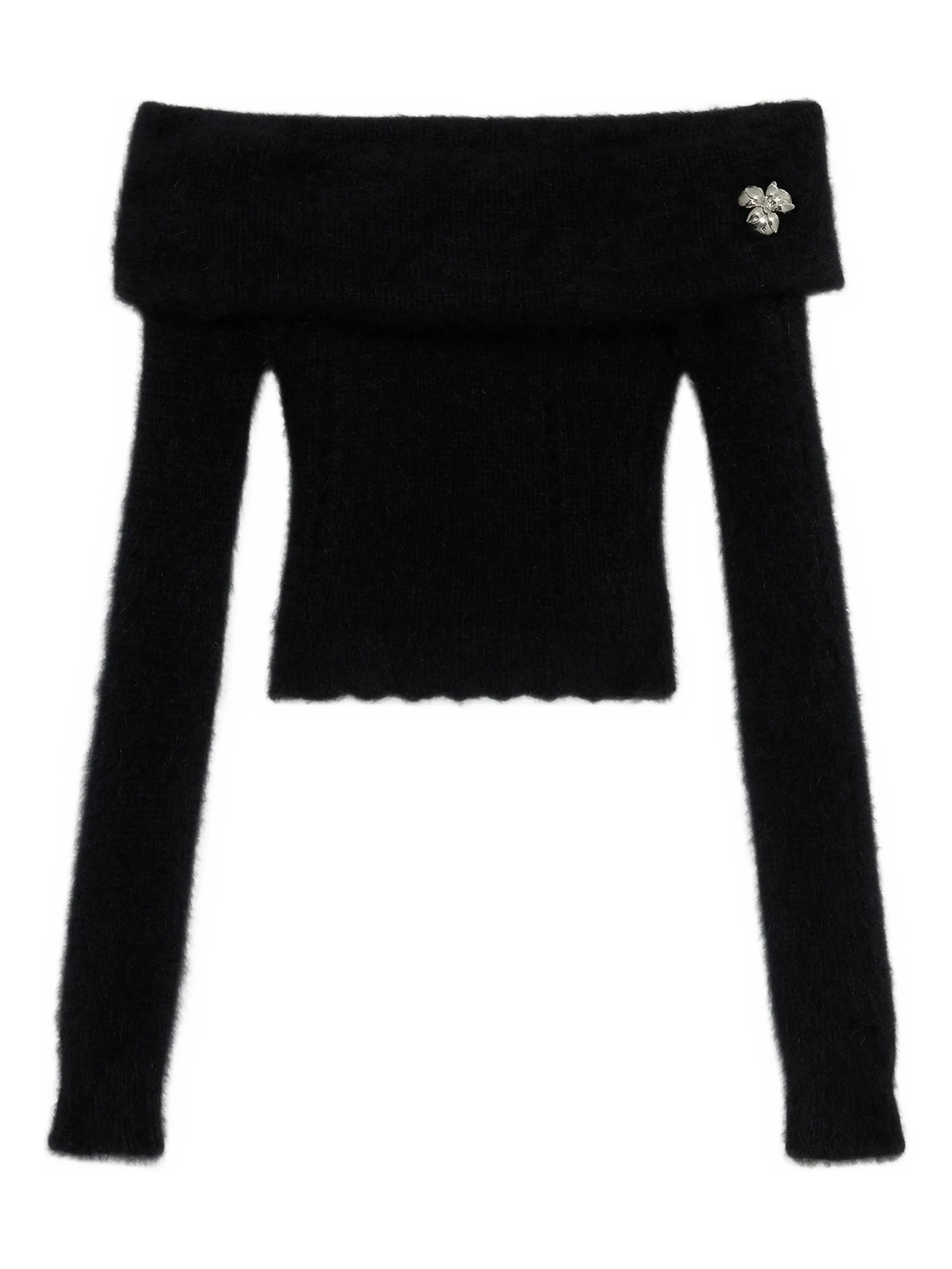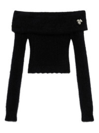 black off-shoulder neckline floral applique long sleeves fuzzy knit cropped - Color: BLACK - Made in: Bangladesh - Designer Style ID: 4M183A N0990 Composition and care Fabric: 100.0%