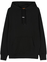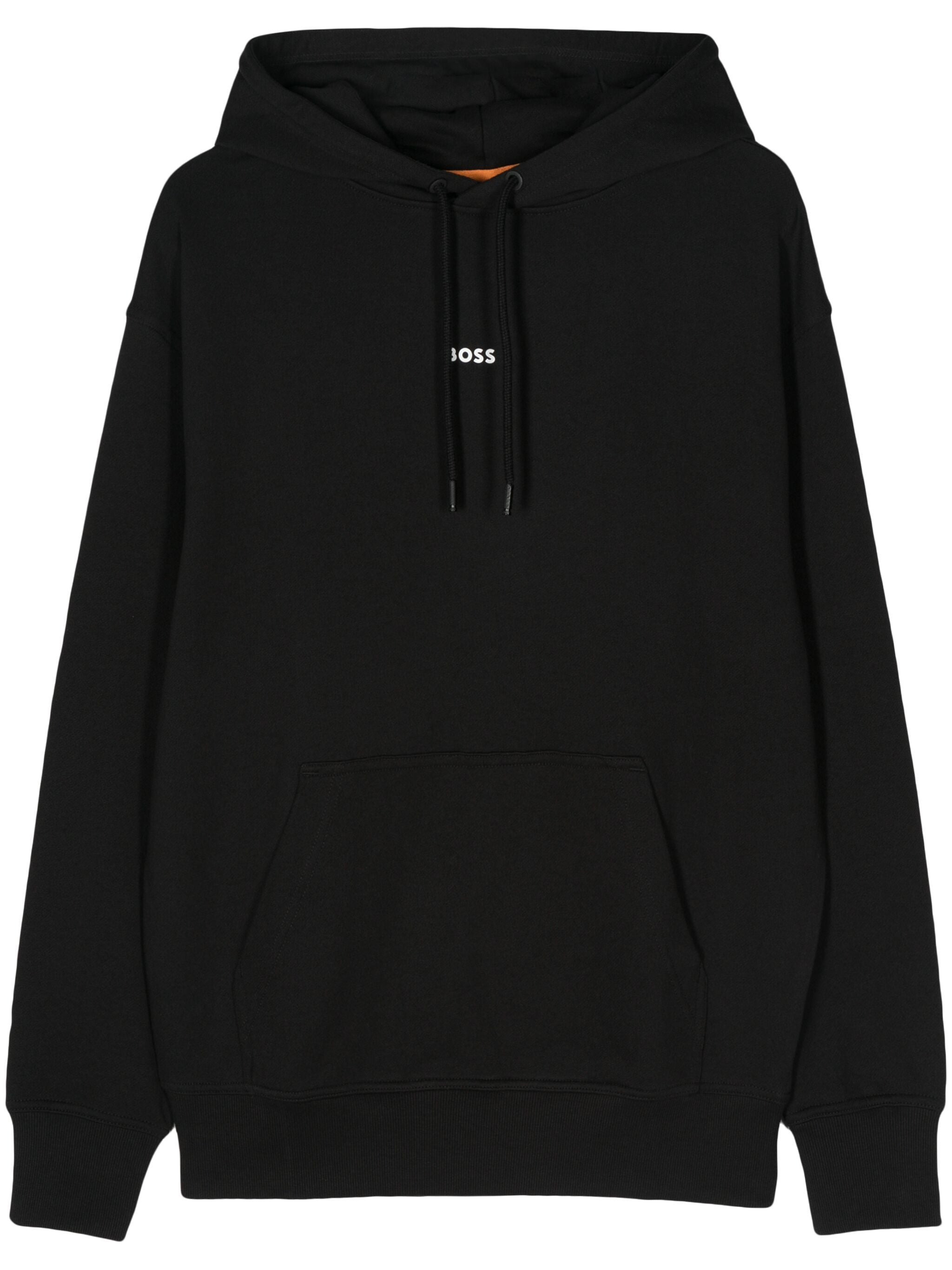 black cotton jersey texture drawstring hood drop shoulder long sleeves rubberised logo detail front pouch pocket ribbed cuffs and hem - Color: BLACK - Made in: Bangladesh - Designer Style ID: 50514530 001 Composition and care Cotton: 100.0%