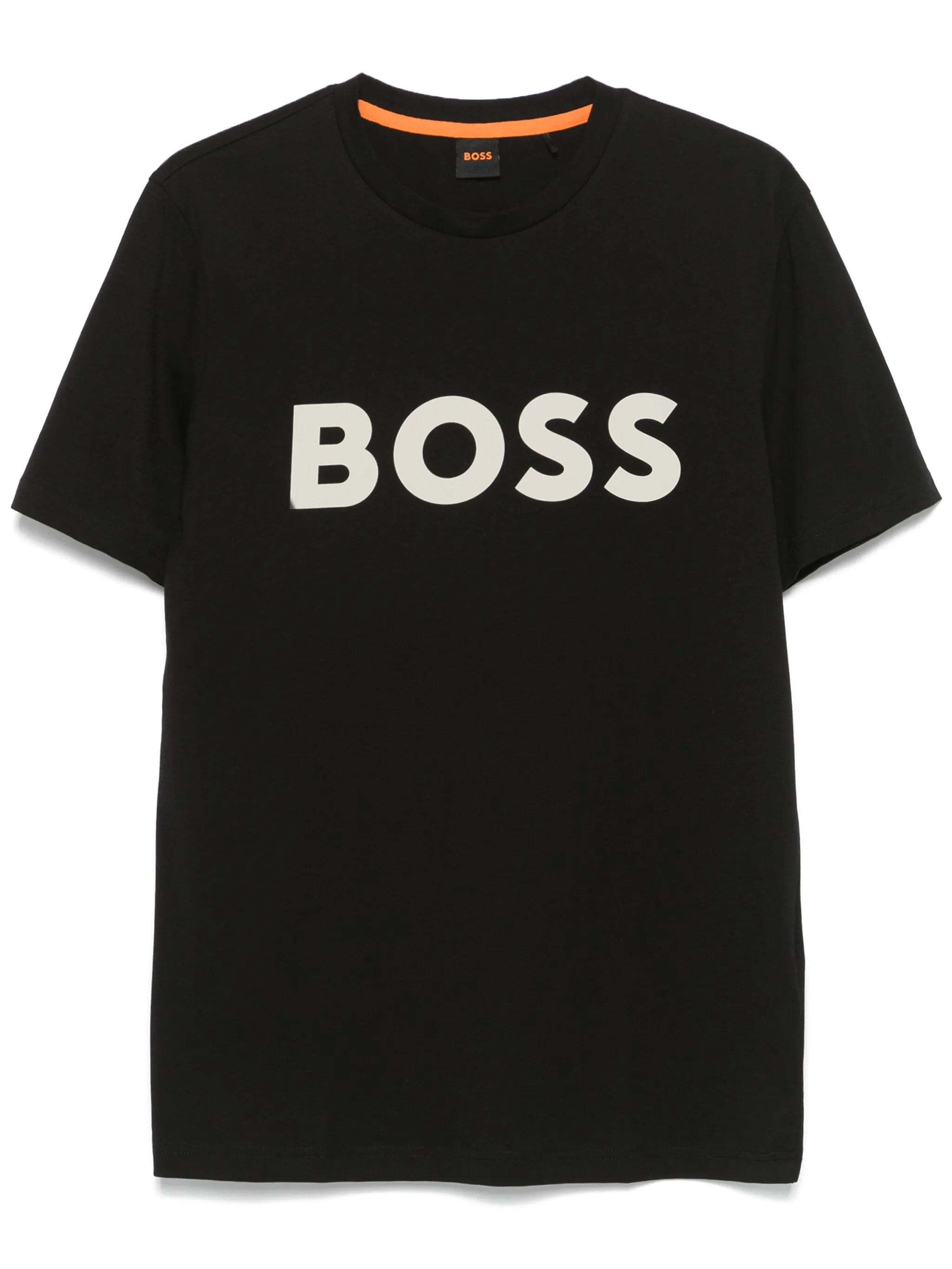black cotton jersey texture rubberised logo detail crew neck short sleeves straight hem - chest: 104.0 centimetres, length: 67.0 centimetres, sleeve length: 23.0 centimetres, shoulder width: 45.0 centimetres - Color: BLACK - Made in: Turkey - Designer Style ID: 50481923 001 Composition and care Cotton: 100.0%