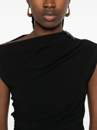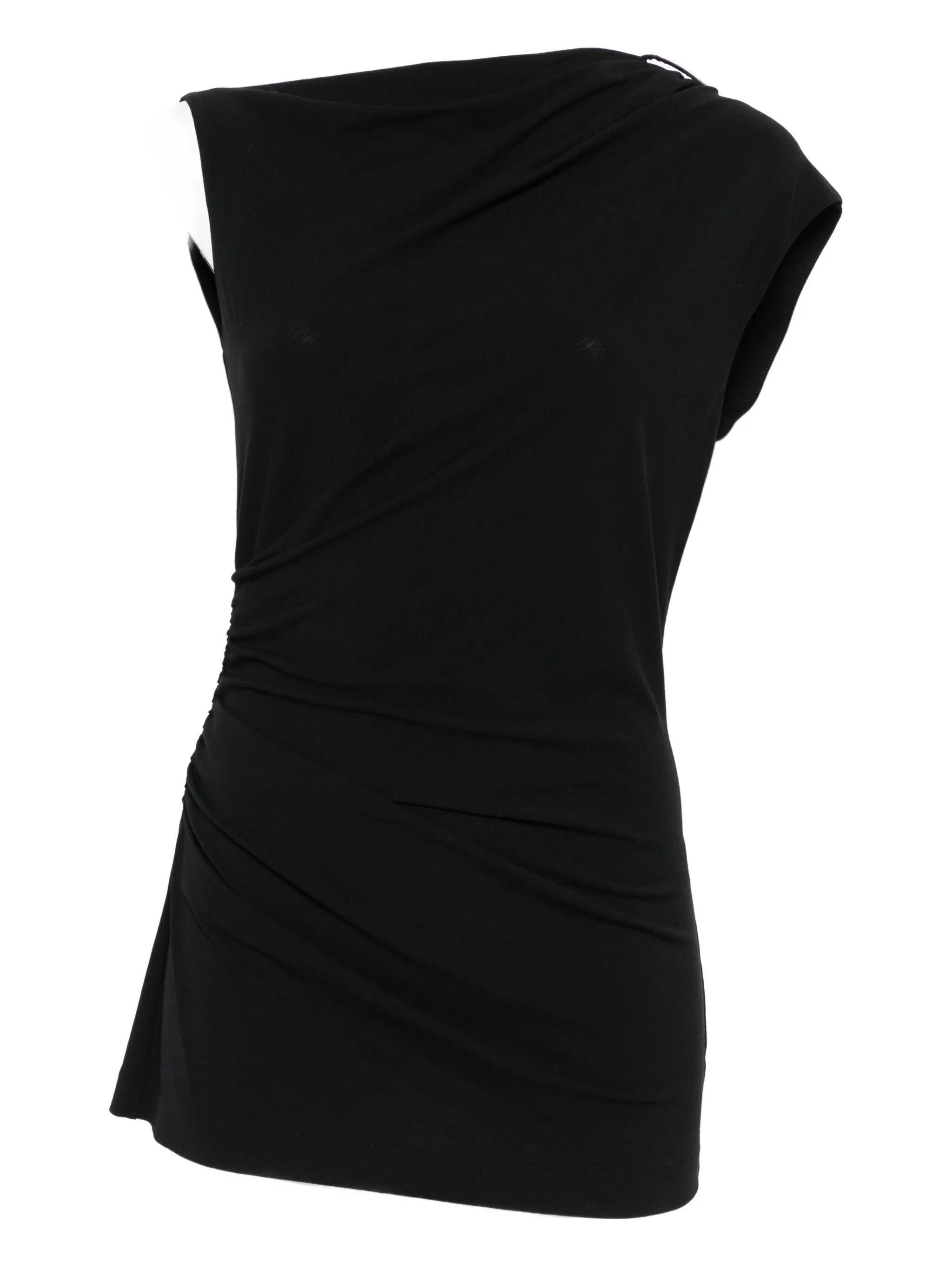 black draped detailing asymmetric hem short sleeves - Color: BLACK - Made in: Italy - Designer Style ID: MP929ED518 C101 Composition and care Viscose: 48.0%, Wool: 48.0%, Elastane: 4.0%