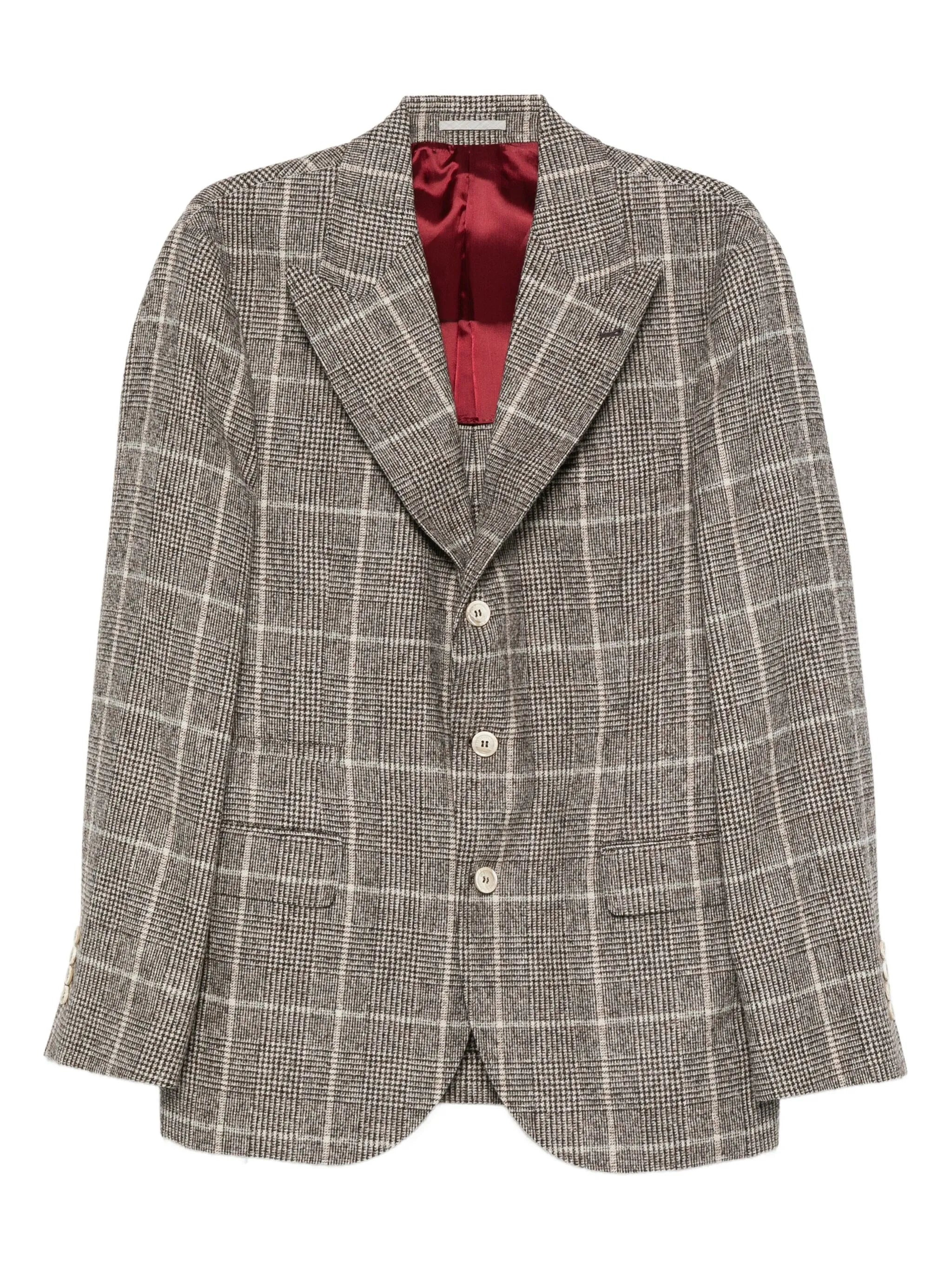 brown checked pattern two button fastening peak lapels long sleeves - Color: BROWN - Made in: Italy - Designer Style ID: MV4037BFD C011 Composition and care Outer Composition Polyamide: 15.0%, Lining Composition Cupro: 100.0%, Outer Composition Wool: 27.0%, Outer Composition Alpaca: 58.0%