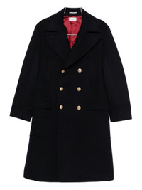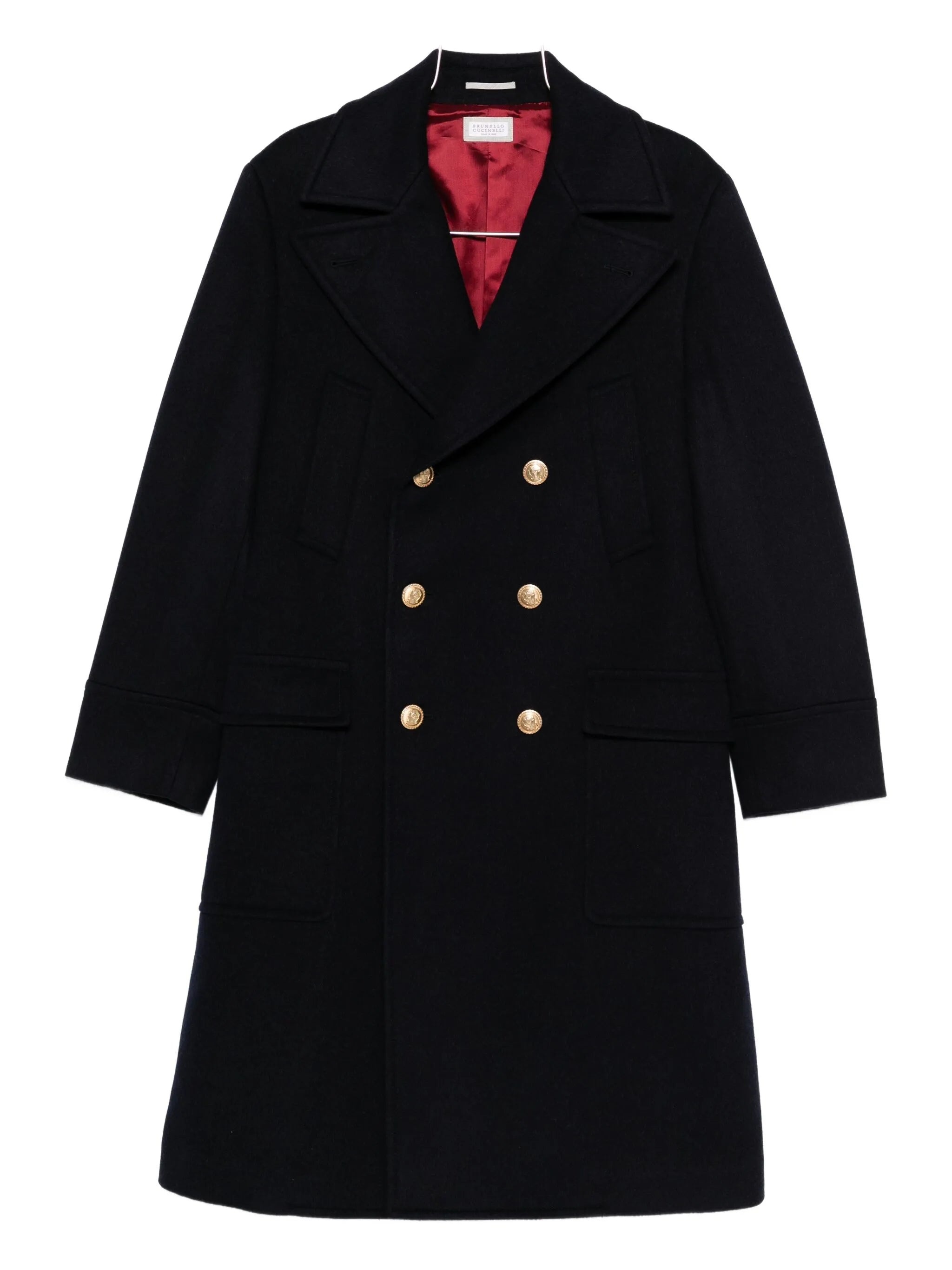 Wool double cloth one-and-a-half breasted coat with metal buttons