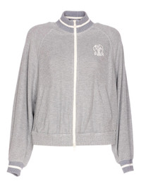 grey high neck zip fastening long sleeves embroidered logo ribbed hem ribbed cuffs - Color: GREY/NEUTRALS - Made in: Italy - Designer Style ID: MG930SN906 C4527 Composition and care Cotton: 33.0%, Polyester: 5.0%, Viscose: 62.0%