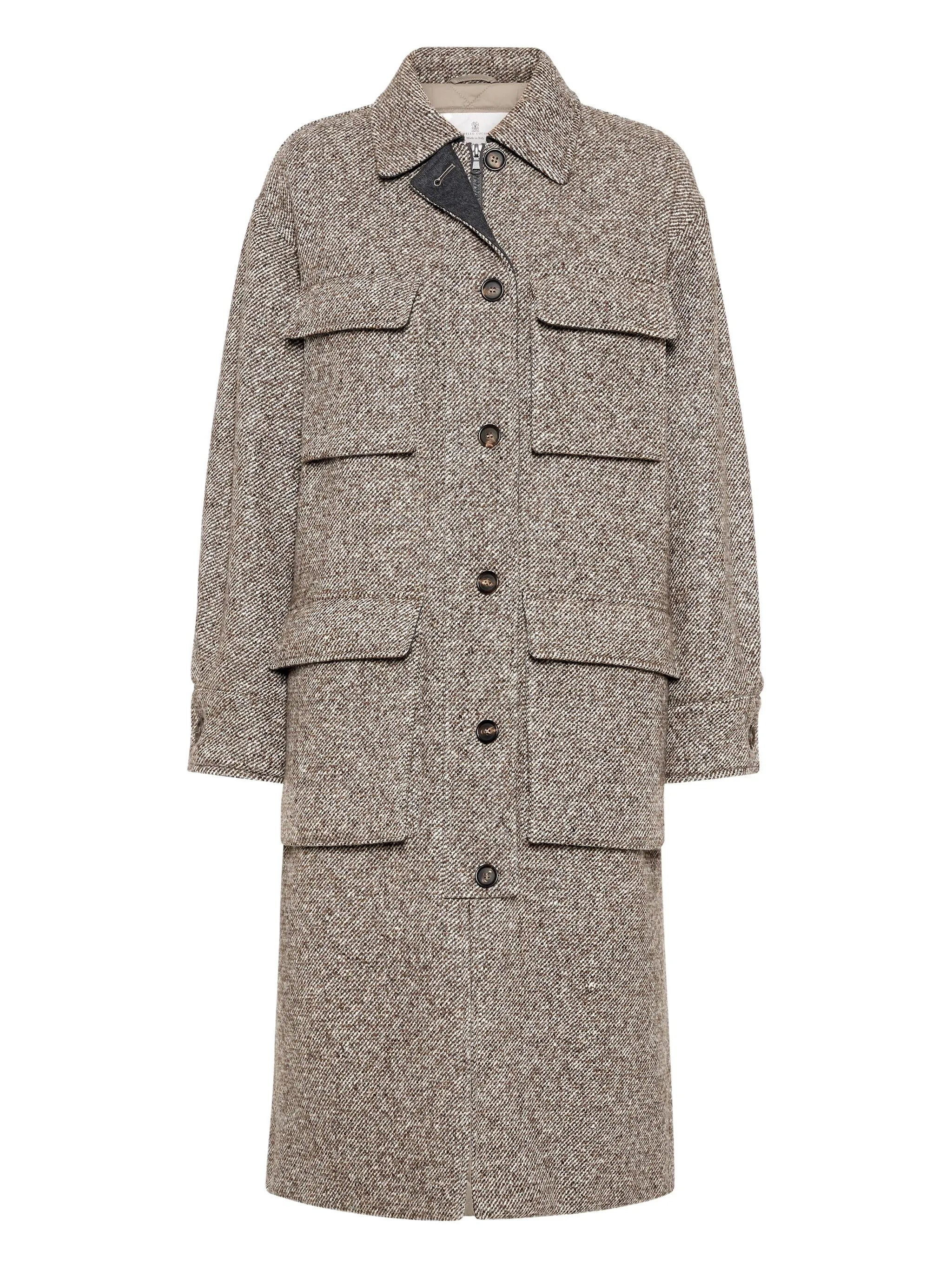 Virgin wool and silk mélange diagonal coat with Thermore® padding and monili