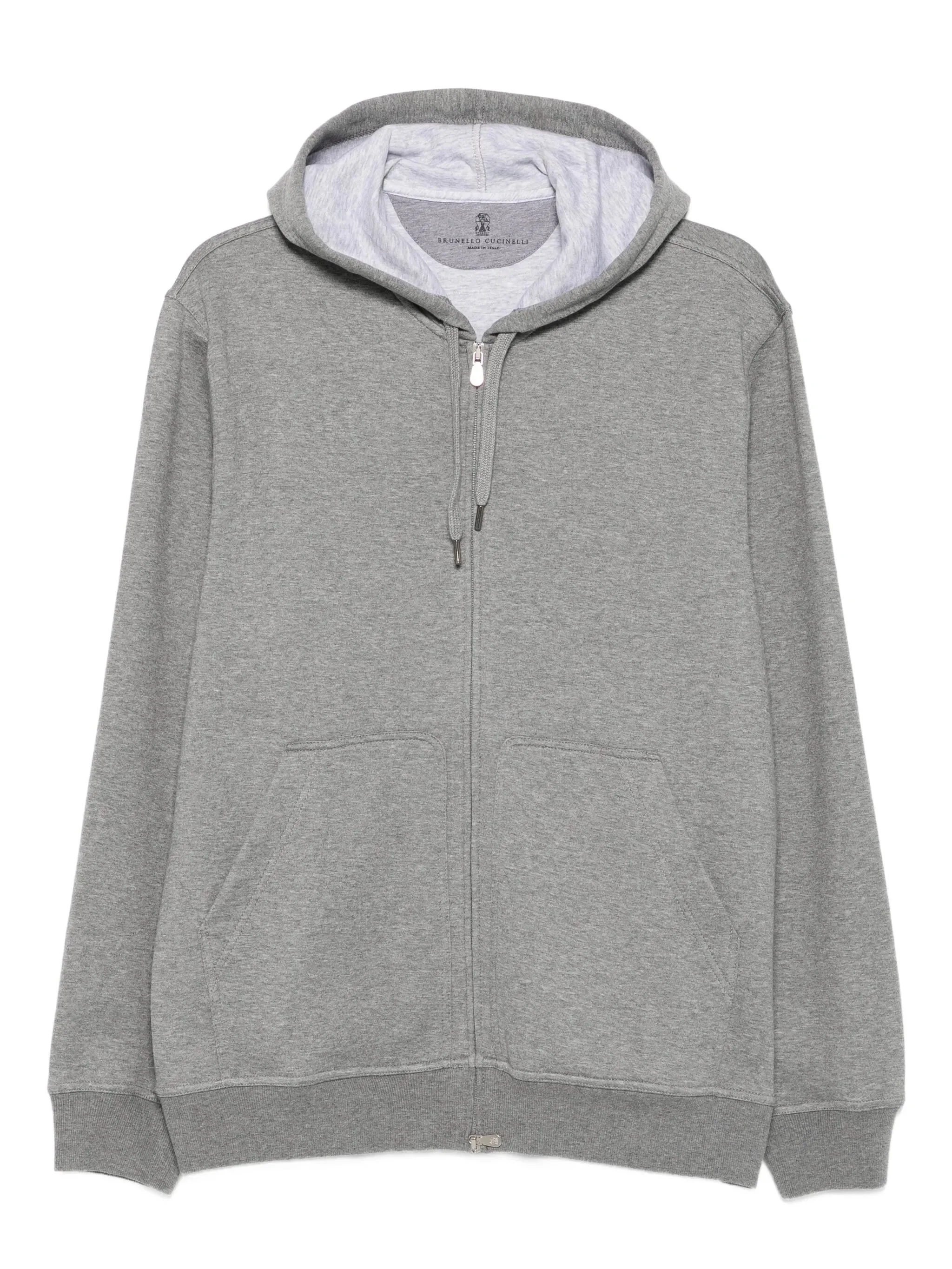 Cotton, cashmere and silk French terry double cloth hooded sweatshirt with zipper