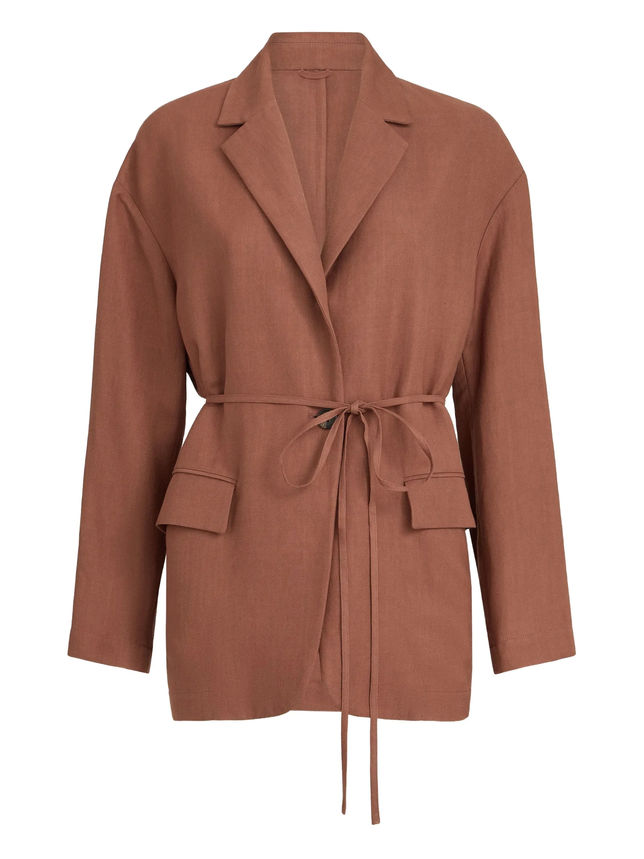 orange monili detail front pockets tie fastening long sleeves - Color: ORANGE - Made in: Italy - Designer Style ID: MH1267591 C4182 Composition and care Linen/flax: 28.0%, Viscose: 72.0%