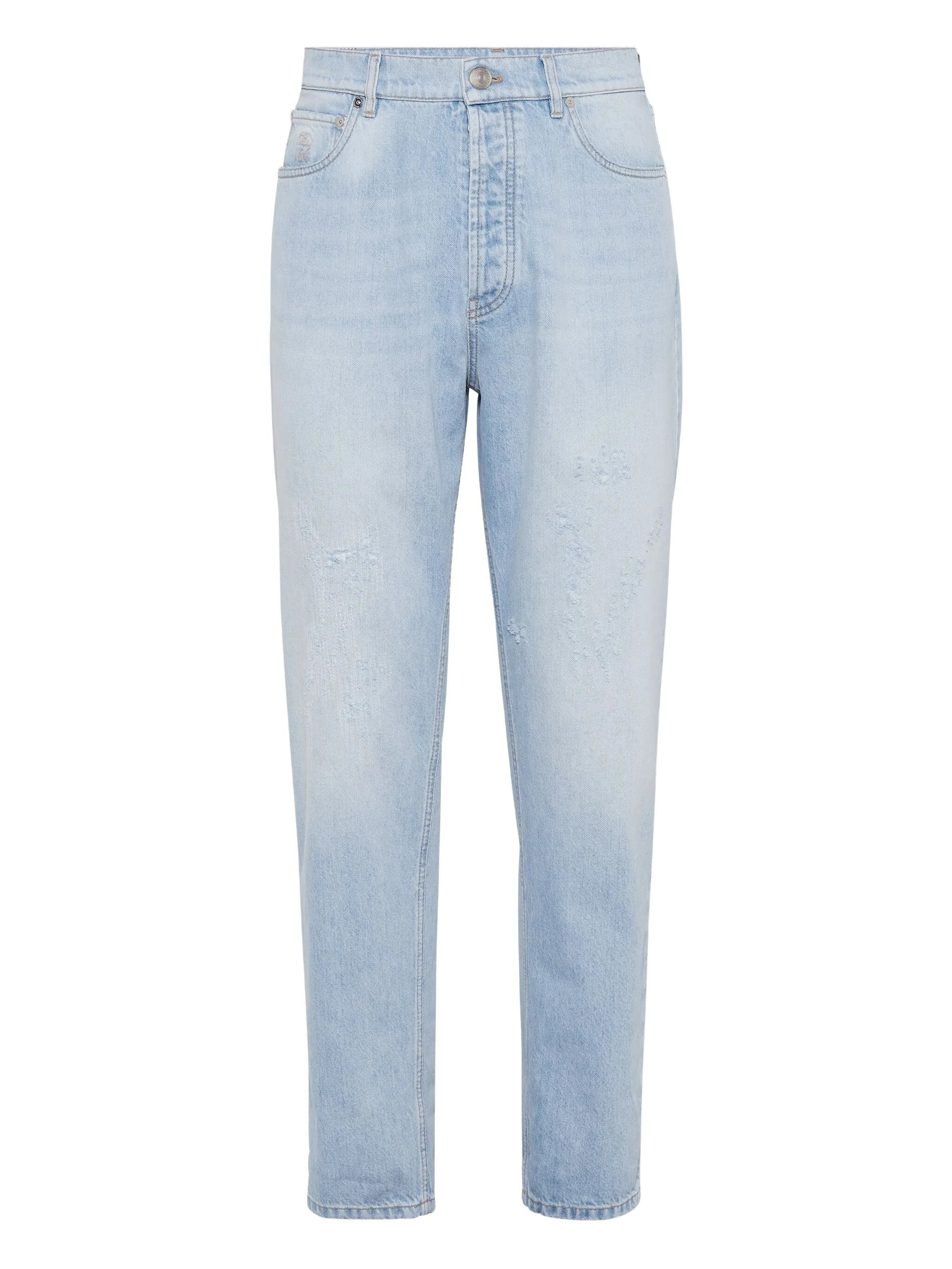 light blue concealed fly and button fastening classic five pockets belt loops logo patch to the rear - Color: BLUE - Made in: Italy - Designer Style ID: M241PO1050 C901R Composition and care Cotton: 100.0%