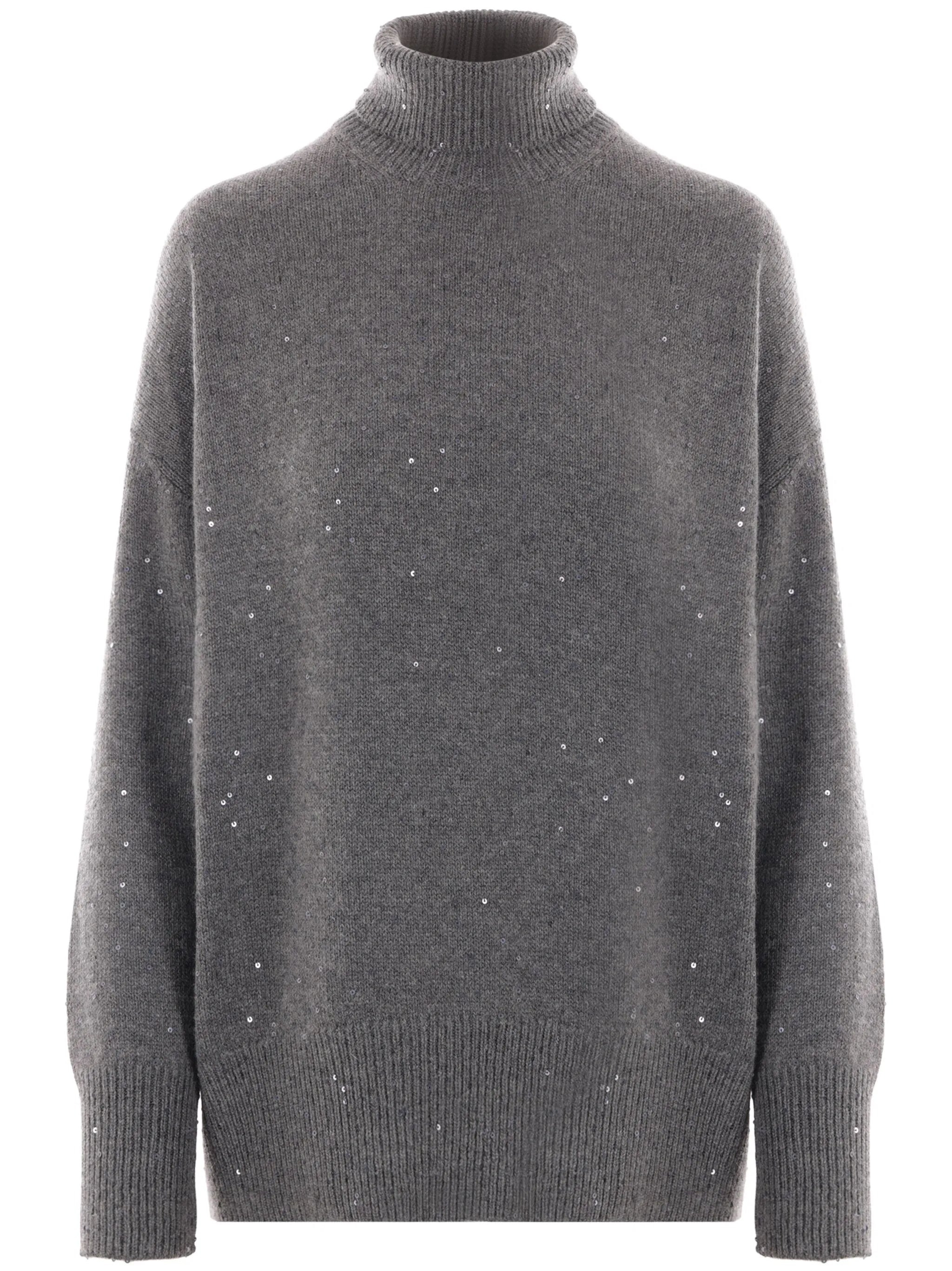 grey cashmere-silk blend knitted construction sequin embellishment roll neck long sleeves ribbed edge straight hem - Color: GREY - Made in: Italy - Designer Style ID: M73539914 CJ079 Composition and care Silk: 20.0%, Cashmere: 80.0%