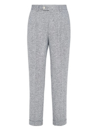 Wool and cashmere flecked grisaille leisure fit trousers with pleat