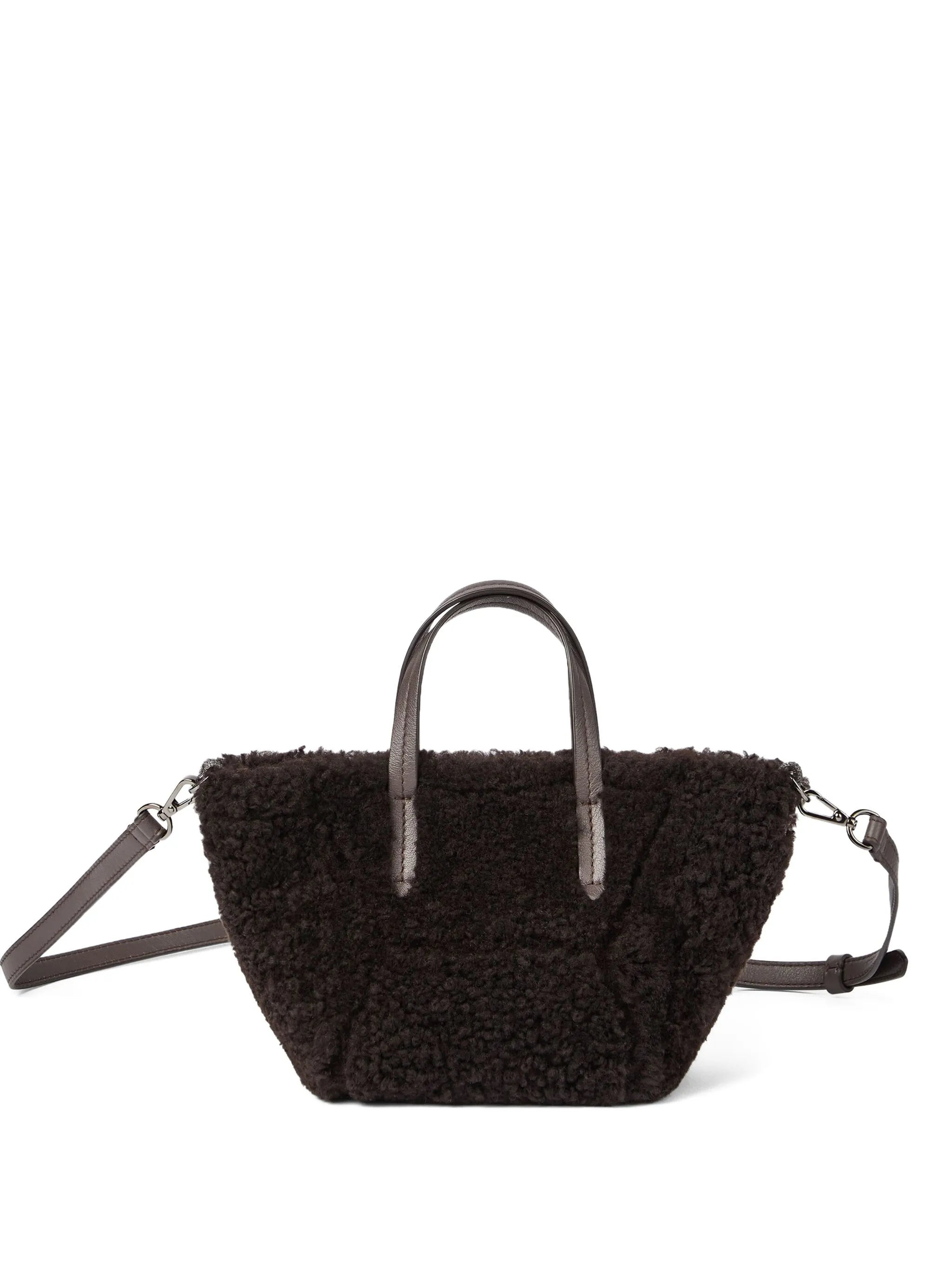 brown shearling top handles detachable shoulder strap leather trim - depth: 10.0 centimetres, height: 14.0 centimetres, width: 25.0 centimetres - Color: BROWN - Made in: Italy - Designer Style ID: MBLSD2675 C2390