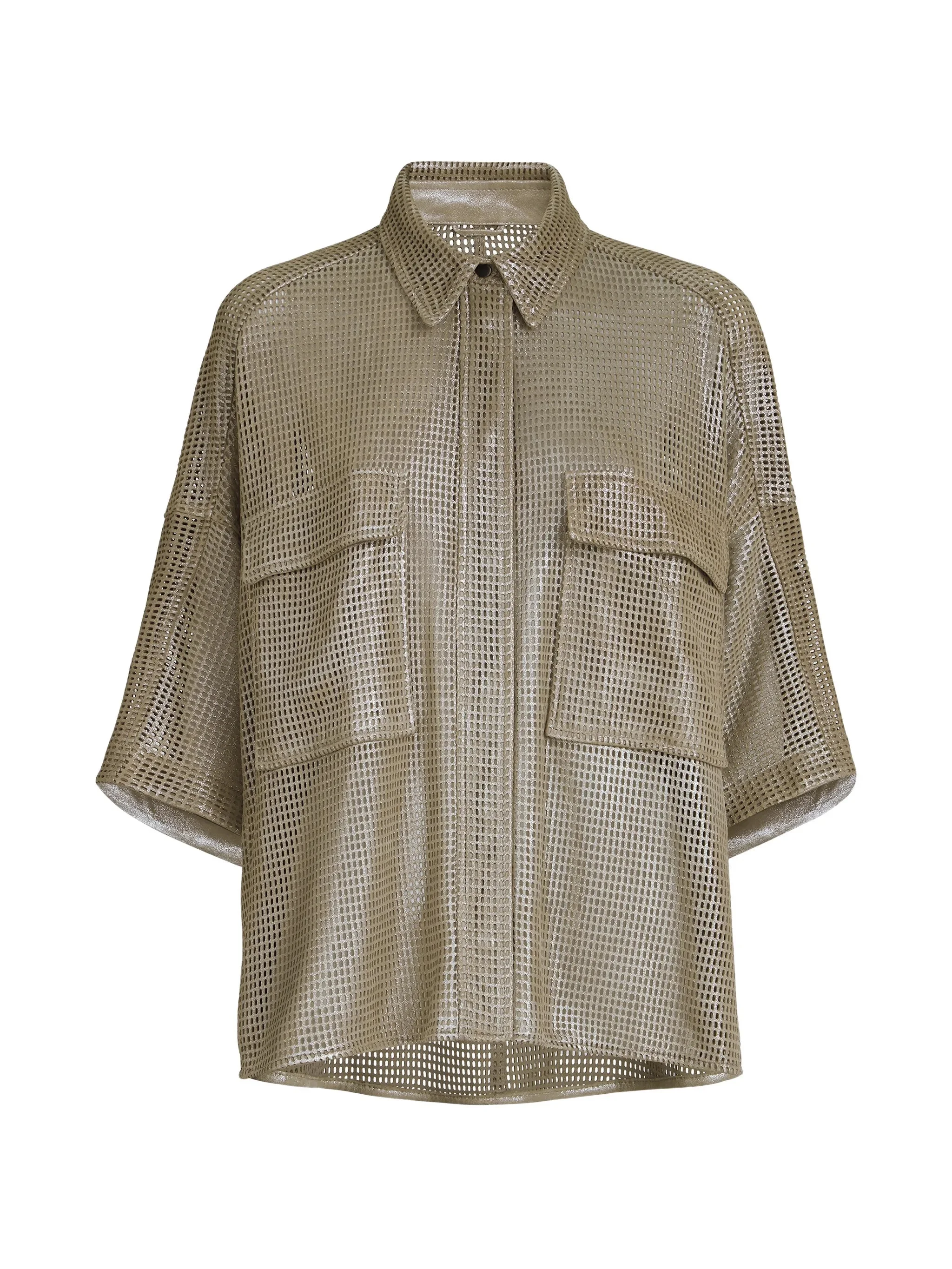 green polo collar short sleeves front zip fastening - Color: GREEN - Made in: Italy - Designer Style ID: MPSHY7956 C8850 Composition and care Leather: 100.0%