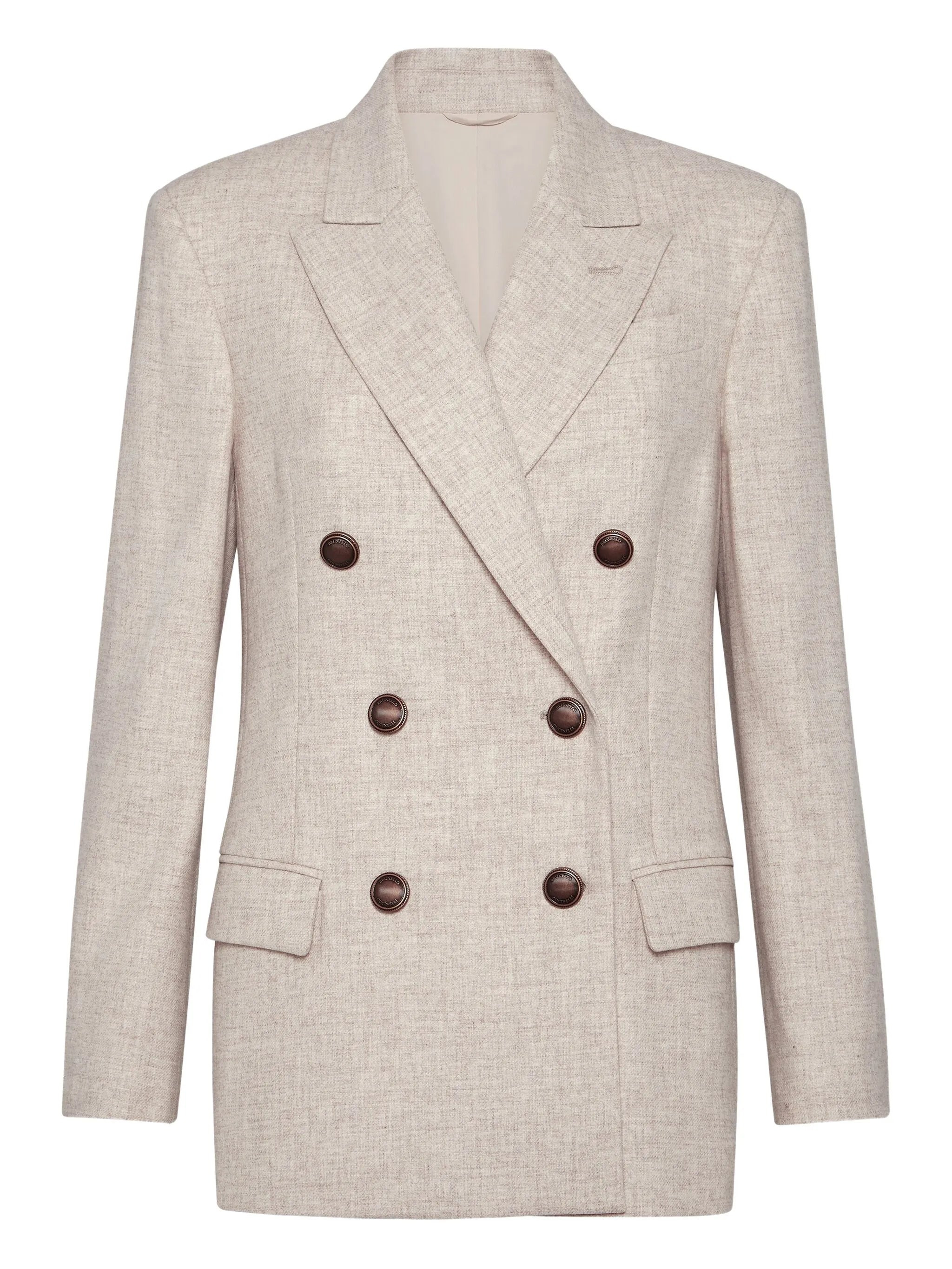 light beige double-breasted button closure peak lapels front pockets tailored design long sleeves - Color: NEUTRALS - Made in: Italy - Designer Style ID: MB1627054 C012 Composition and care Cashmere: 5.0%, Virgin Wool: 95.0%