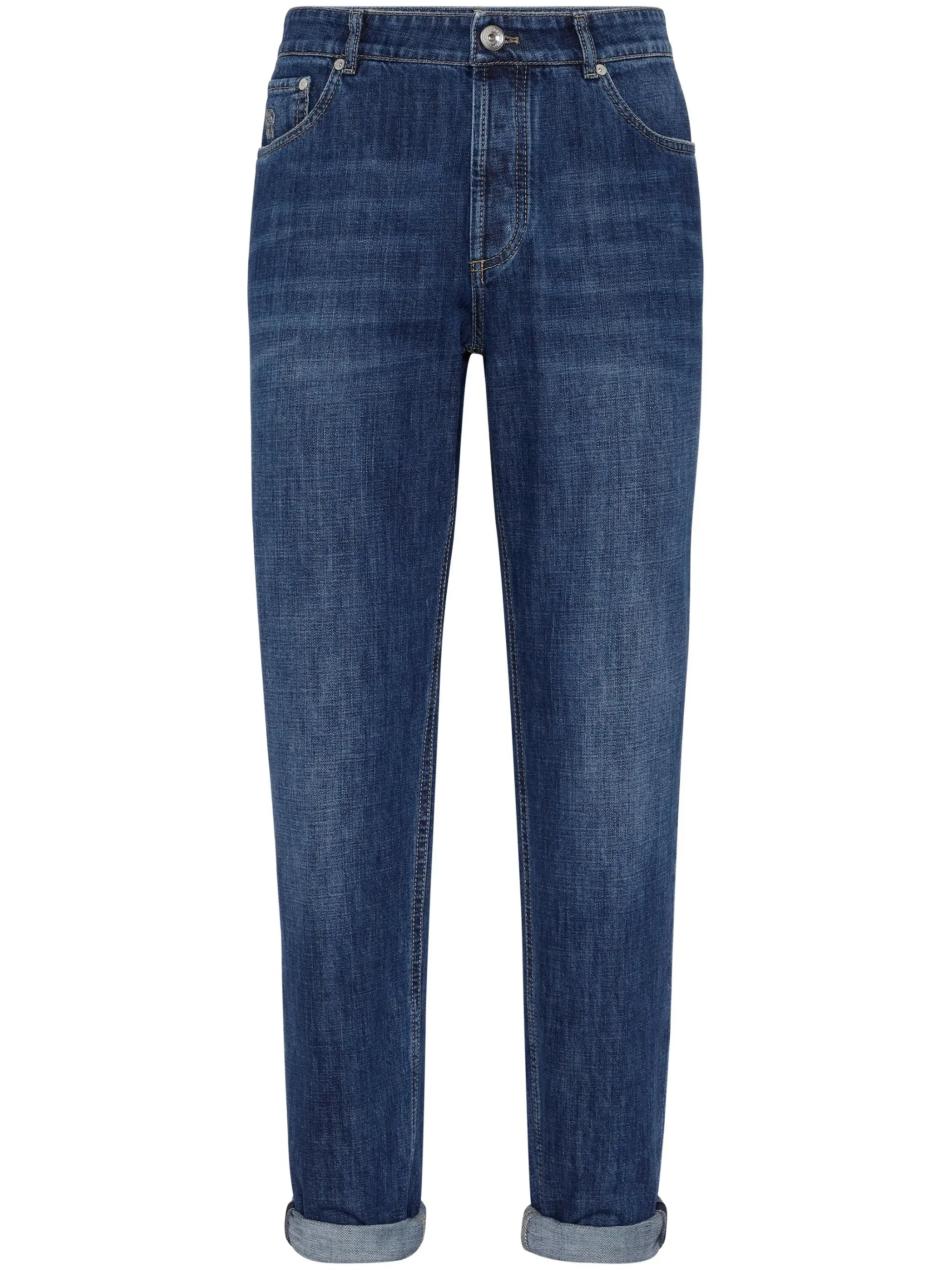 Lightweight denim traditional fit five-pocket trousers