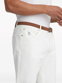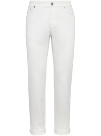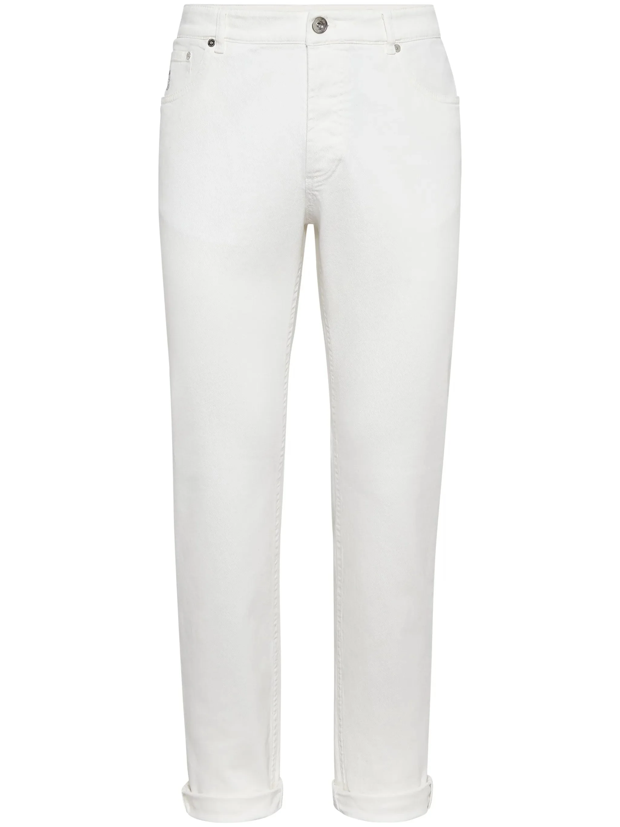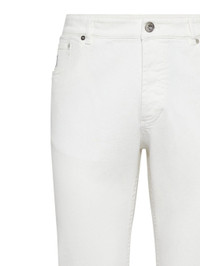 white cotton front button and zip fastening belt loops two rounded pockets to the sides logo patch to the rear straight leg - Color: WHITE - Made in: Italy - Designer Style ID: M277PD3210 C7210 Composition and care Outer Composition Cotton: 99.0%, Lining Composition Cotton: 100.0%, Outer Composition Leather: 100.0%, Outer Composition Elastane: 1.0%