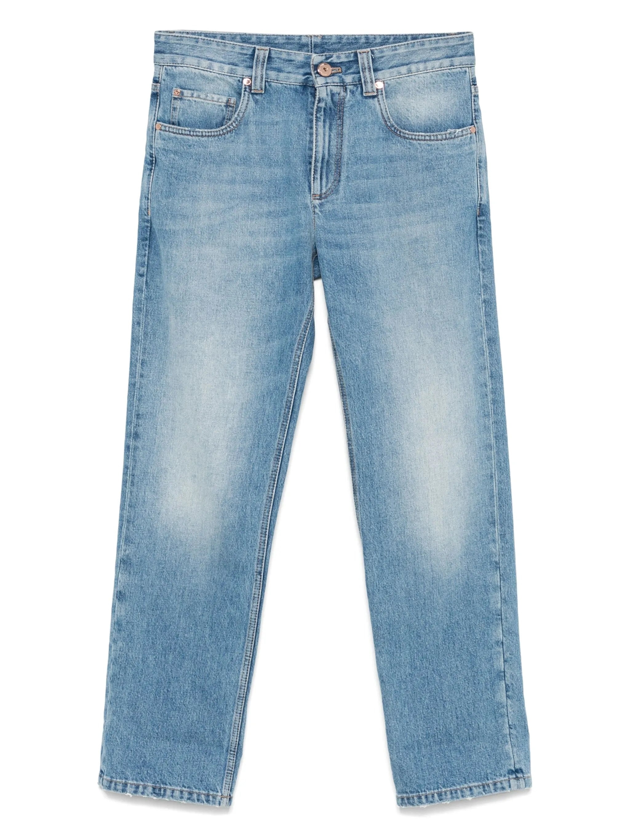 light blue concealed fly and button fastening belt loops classic five pockets mid-wash - Color: BLUE - Made in: Italy - Designer Style ID: MP095P4028 C9012 Composition and care Outer Composition Cotton: 100.0%, Lining Composition Cotton: 100.0%, Outer Composition Leather: 100.0%
