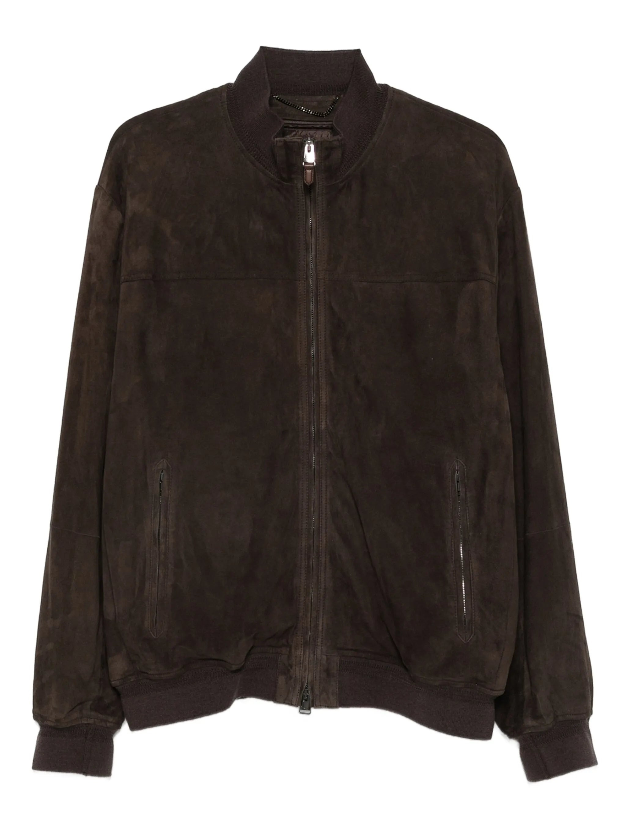 brown goat suede zip front ribbed cuffs ribbed hem - Color: BROWN - Made in: Italy - Designer Style ID: LE00298 O70466 501 Composition and care Polyamide: 100.0%, Polyester: 100.0%, Goat Suede: 100.0%