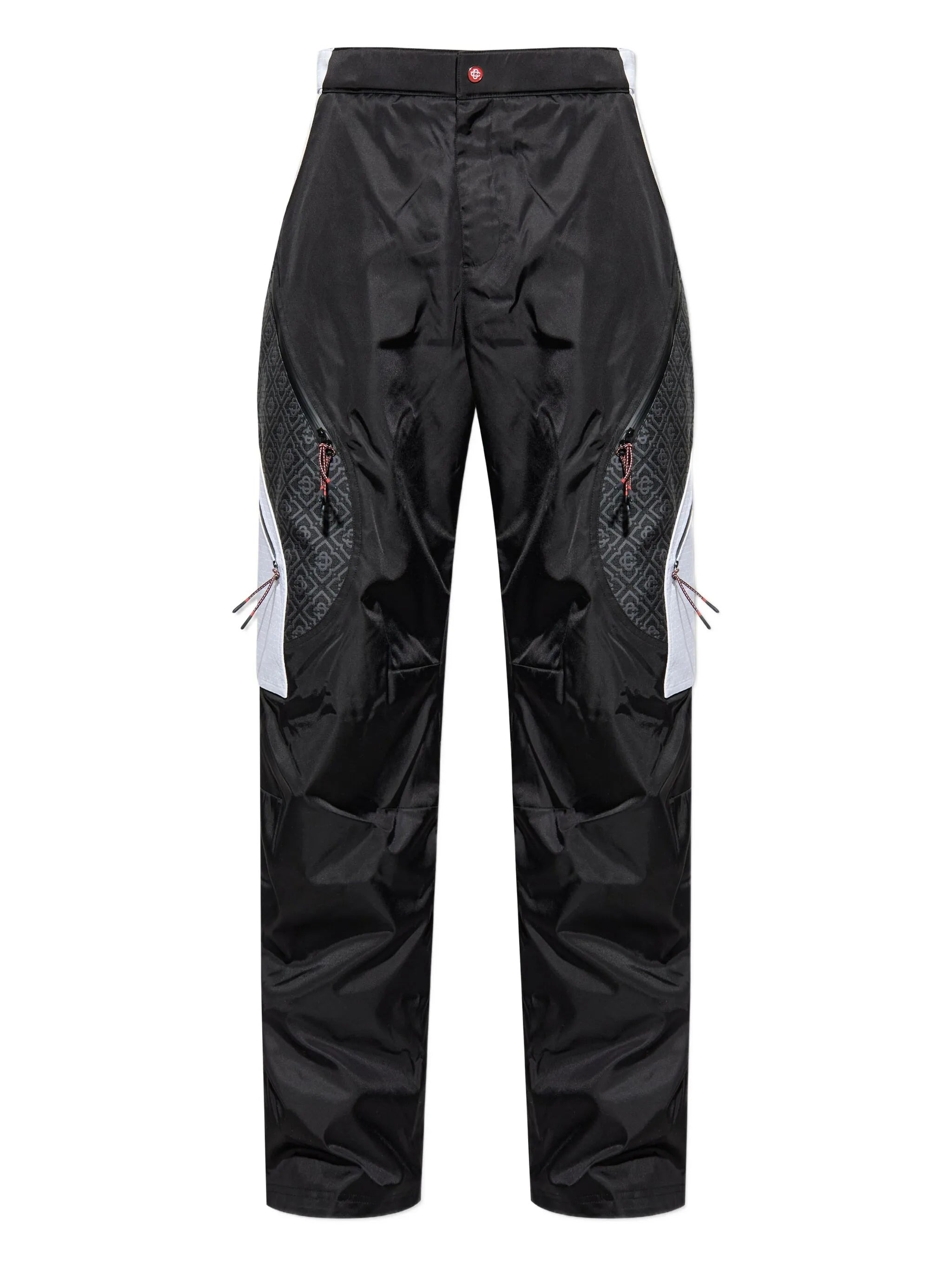 black geometric pattern panel side pockets drawstring fastening button fastening logo button - Color: BLACK - Made in: Portugal - Designer Style ID: TR-324 01 BLACK Composition and care Outer Composition Polyamide: 96.0%, Lining Composition Polyester: 100.0%, Outer Composition Polyurethane: 4.0%