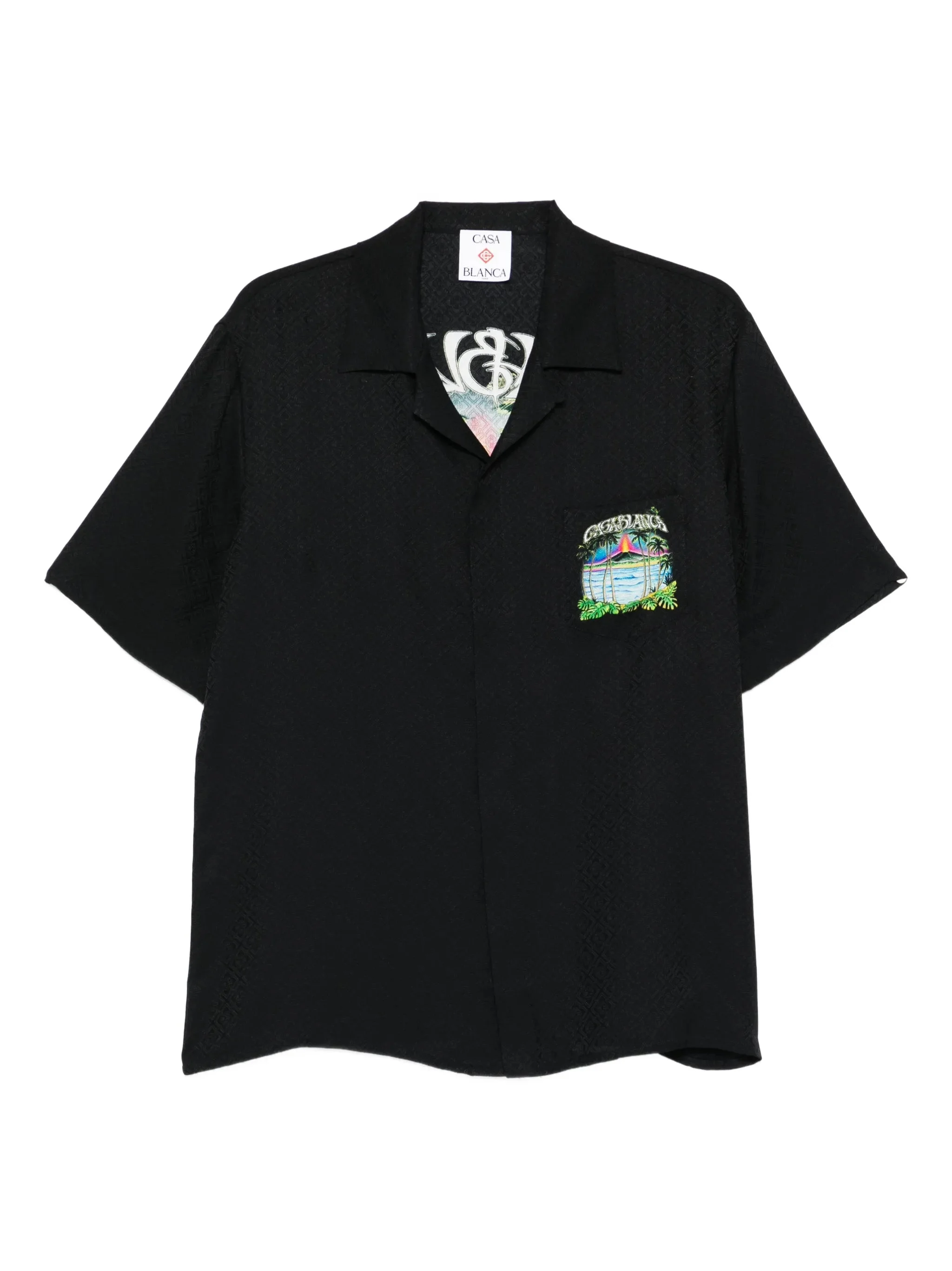 black textured finish revere collar short sleeves chest pocket graphic detail - Color: BLACK - Made in: Italy - Designer Style ID: SP26-SH-003 09 VOLCA Composition and care Silk: 100.0%