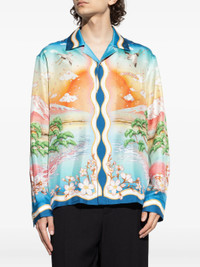 light blue landscape print revere collar straight hemline - Color: /ORANGE - Made in: Italy - Designer Style ID: SH-006 01 Composition and care Silk: 100.0%