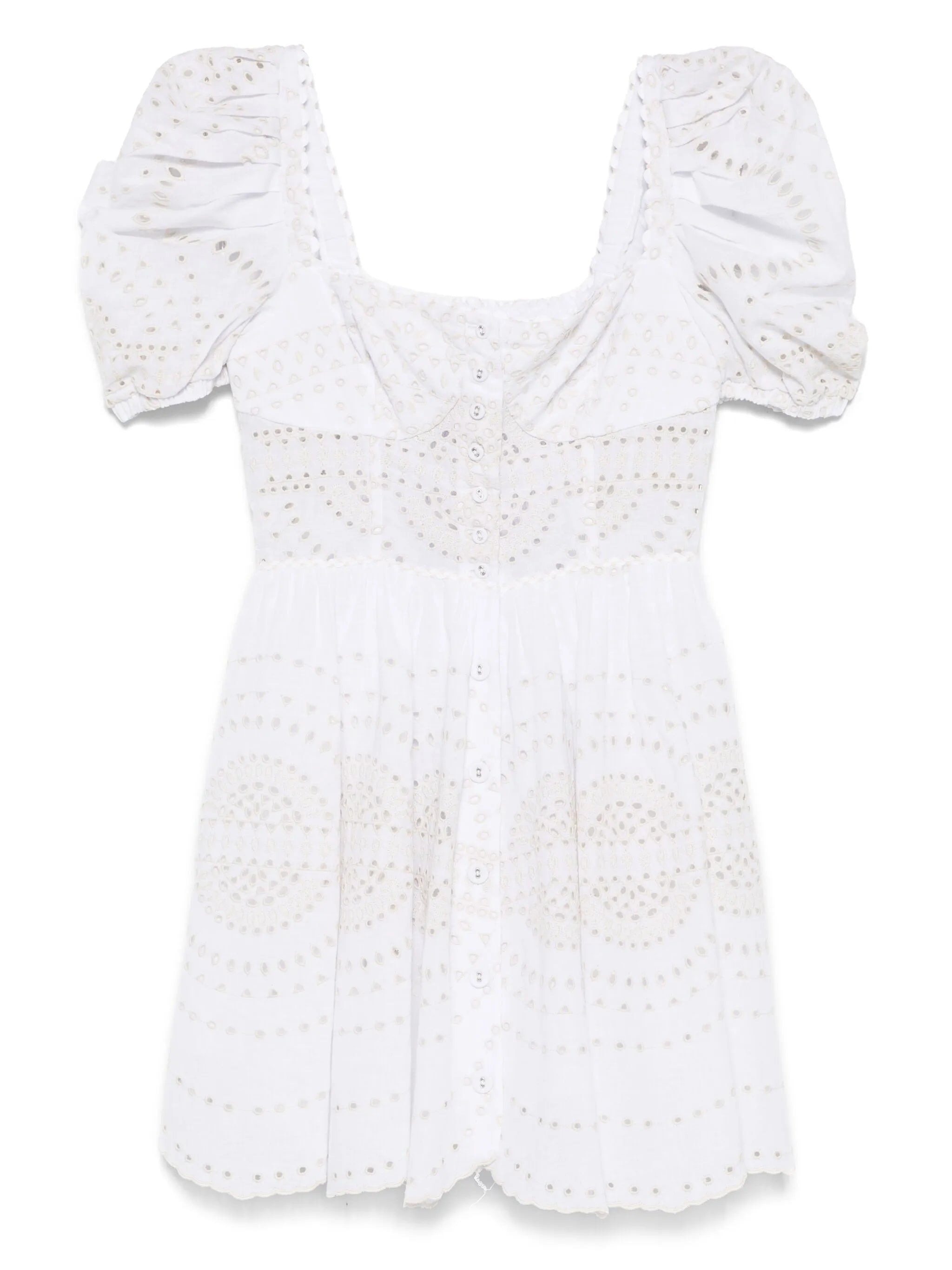 light beige short front button fastening square neck short puff sleeves broderie anglaise - Color: NEUTRALS - Made in: Portugal - Designer Style ID: 254604 IVORY Composition and care Cotton: 60.0%, Linen/flax: 20.0%, Polyester: 20.0%