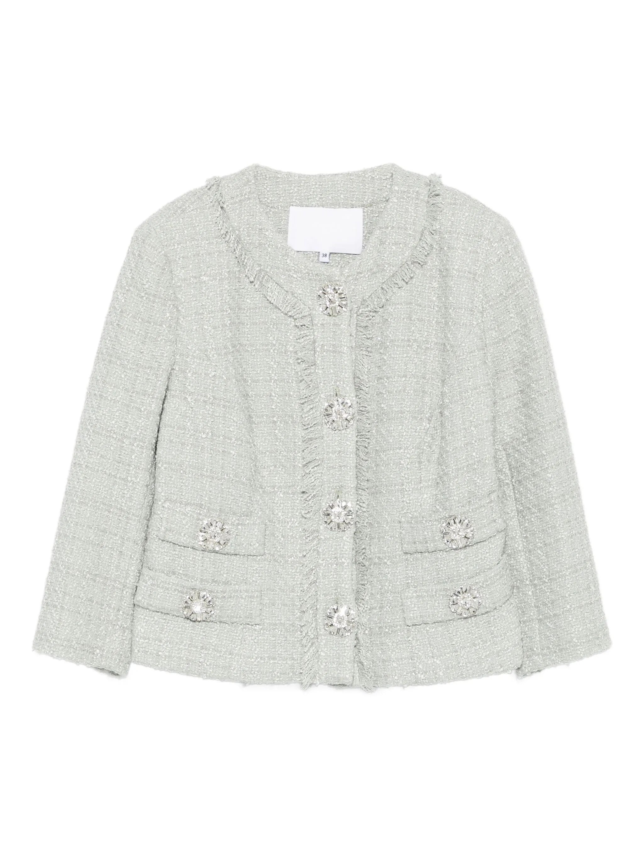 mint green crystal embellishment frayed edge button fastening patch pockets tweed - Color: GREEN - Made in: Greece - Designer Style ID: PF2545 MACIE DMINT Composition and care Outer Composition Polyester: 100.0%, Lining Composition Polyester: 100.0%