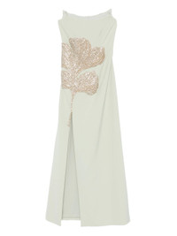 dusty mint leaf embellishment beading details strapless neckline front slit - Color: GREEN - Made in: Lithuania - Designer Style ID: PF2528 FARANNA DMINT Composition and care Outer Composition Polyester: 92.0%, Lining Composition Polyester: 100.0%, Outer Composition Polyurethane: 8.0%