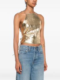 gold metallic finish halterneck sleeveless rear tie fastening - Color: GOLD - Made in: India - Designer Style ID: LTP3930LR3062 JUHI GOLD Composition and care Lining Composition Polyester: 100.0%, Outer Composition Sheepskin: 100.0%