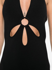 black halterneck ring detail cutout detail sleeveless midi length - Color: BLACK - Made in: United States - Designer Style ID: DR32597YV2418 VINNA BLACK Composition and care Nylon: 46.0%, Spandex/elastane: 1.0%, Rayon: 53.0%