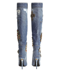 Denim boots with embroidery and stones