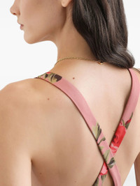rose pink floral print V-neck criss-cross back straps sleeveless gathered detailing - Color: PINK/RED - Made in: Italy - Designer Style ID: F6ZA1T IS11F HF5ZN Composition and care Outer Composition Silk: 100.0%, Lining Composition Silk: 96.0%, Lining Composition Elastane: 4.0%