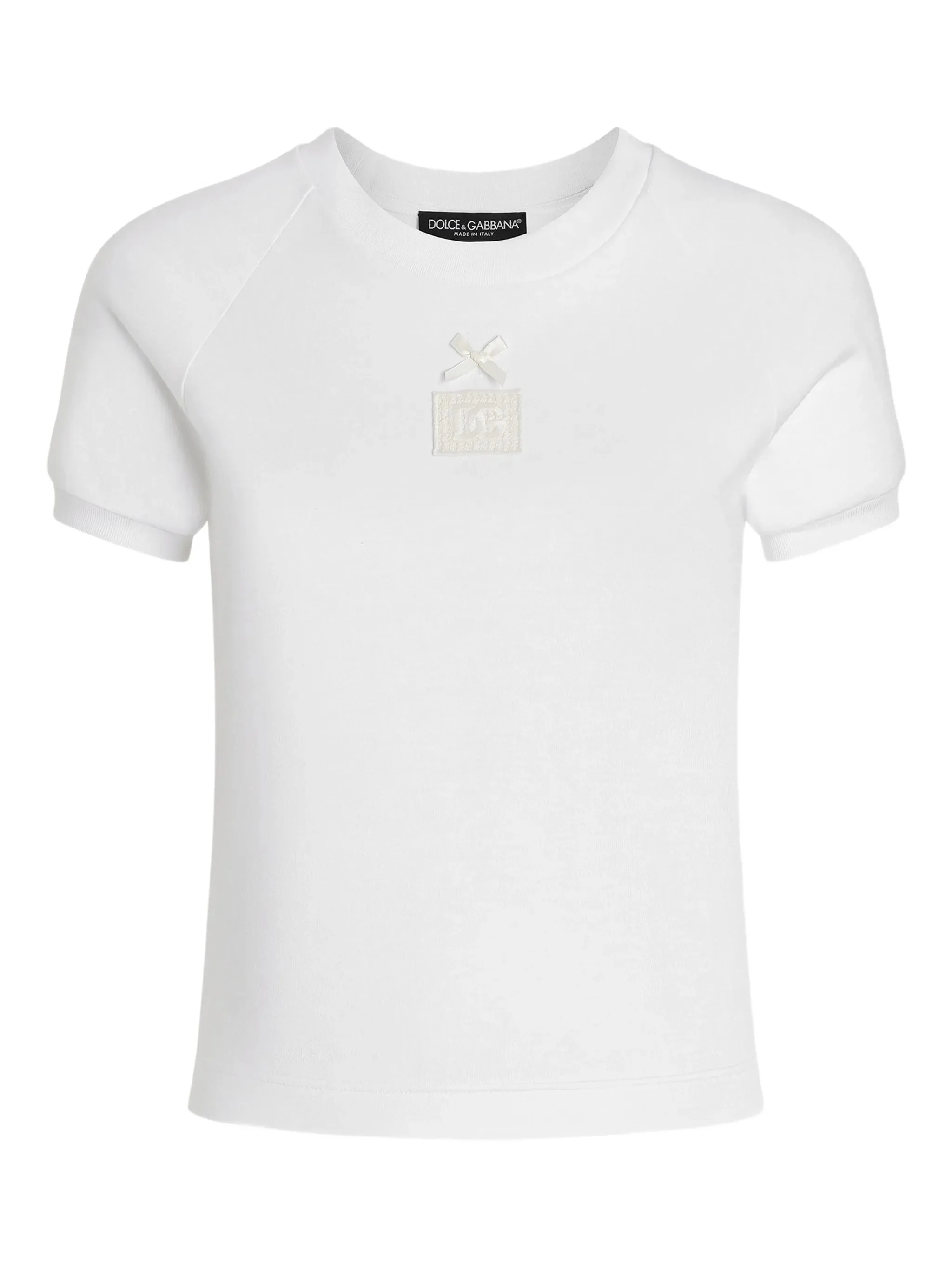 white bow detailing logo applique short sleeves round neck - Color: WHITE - Made in: Italy - Designer Style ID: F8V88Z HU7SD W0800 Composition and care Cotton: 90.0%, Elastane: 10.0%