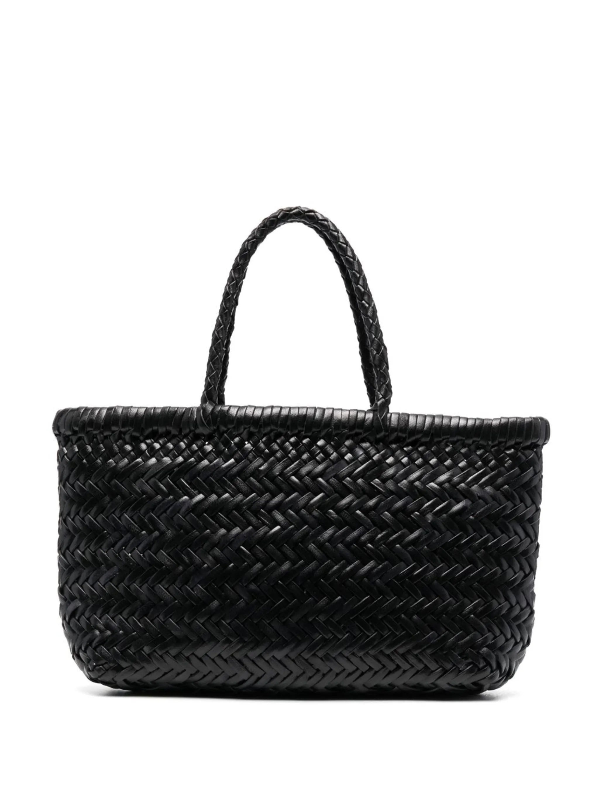 jet black calf leather interwoven design two rolled top handles open top - depth: 5.0 centimetres, handle: 12.0 centimetres, height: 16.0 centimetres, width: 27.0 centimetres - Color: BLACK - Made in: India - Designer Style ID: 8809 BLACK Composition and care Leather: 100.0%