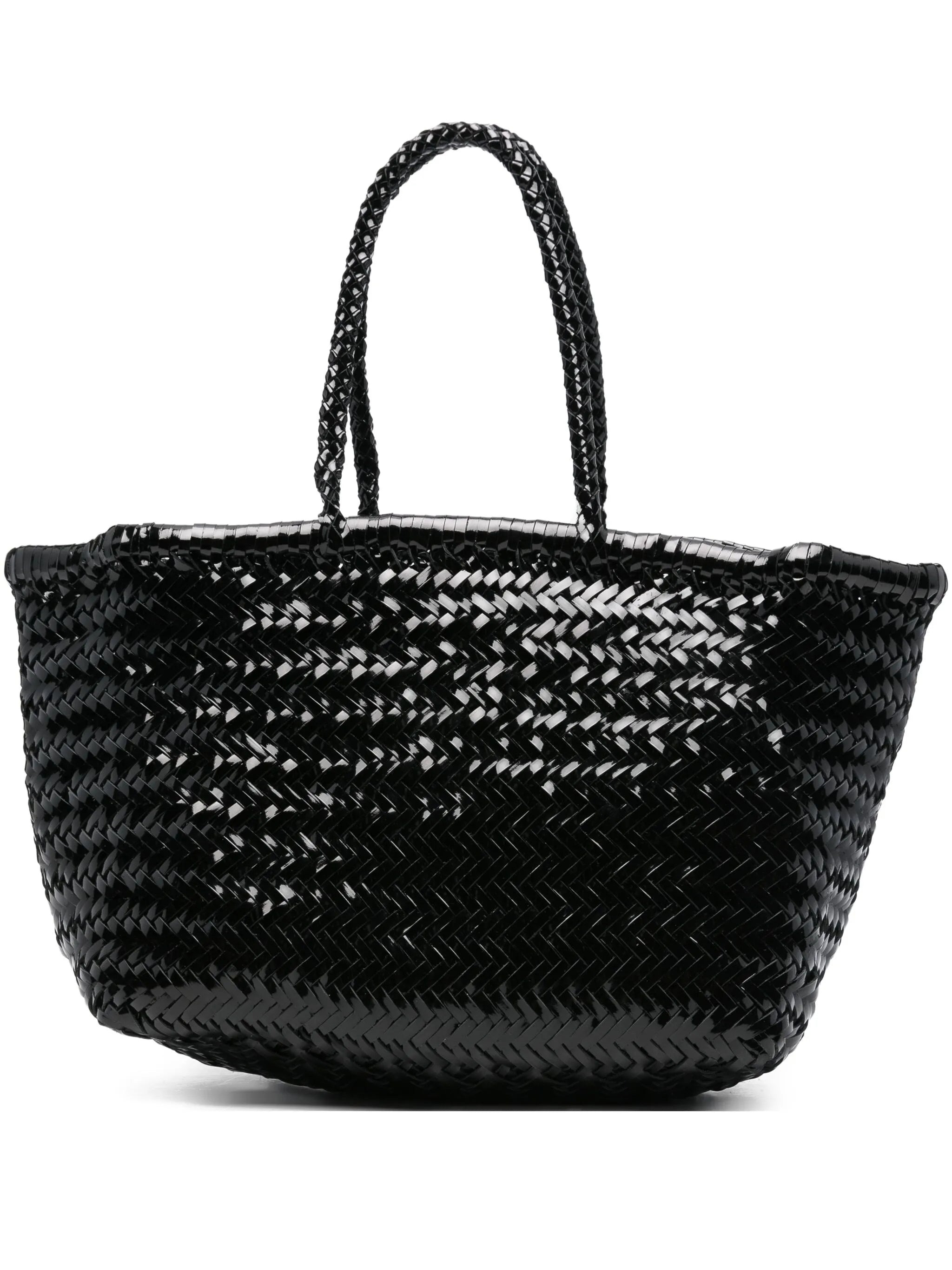 black patent leather woven design top handles - Color: BLACK - Made in: India - Designer Style ID: 8810P PABK Composition and care Outer Composition Patent Calf Leather: 100.0%