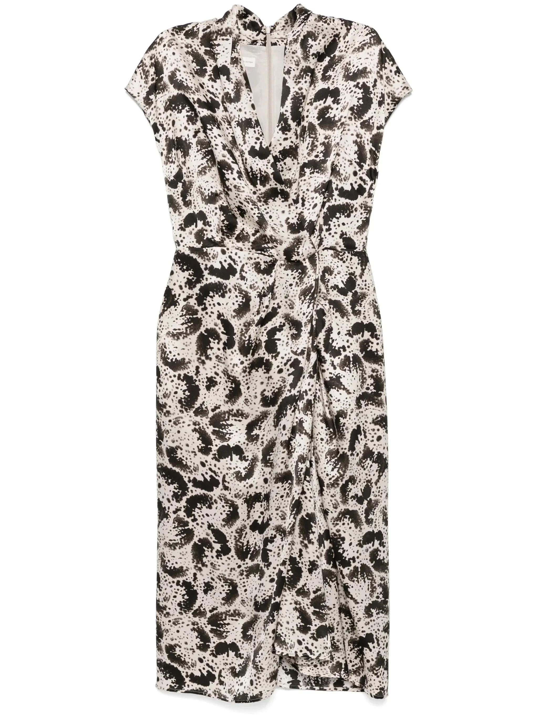 black concealed rear zip fastening V-neck short sleeves ruched detailing - Color: BLACK/NEUTRALS - Made in: Poland - Designer Style ID: 1163 011022 900 Composition and care Outer Composition Silk: 100.0%, Lining Composition Silk: 100.0%