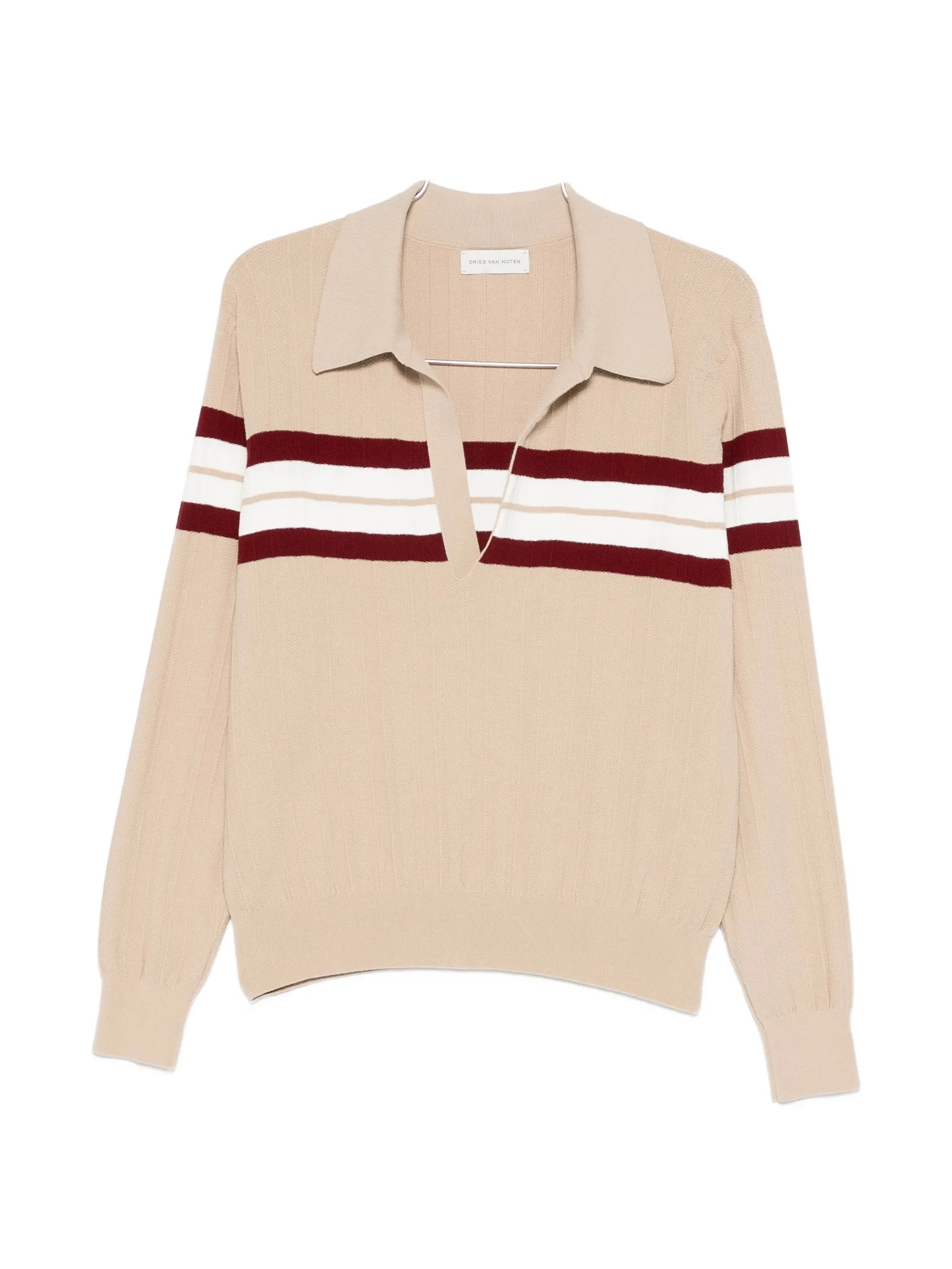 beige striped detail ribbed trims polo collar long sleeves V-neck - Color: NEUTRALS - Made in: Belgium - Designer Style ID: 3701 021219 103 Composition and care Polyester: 30.0%, Viscose: 70.0%