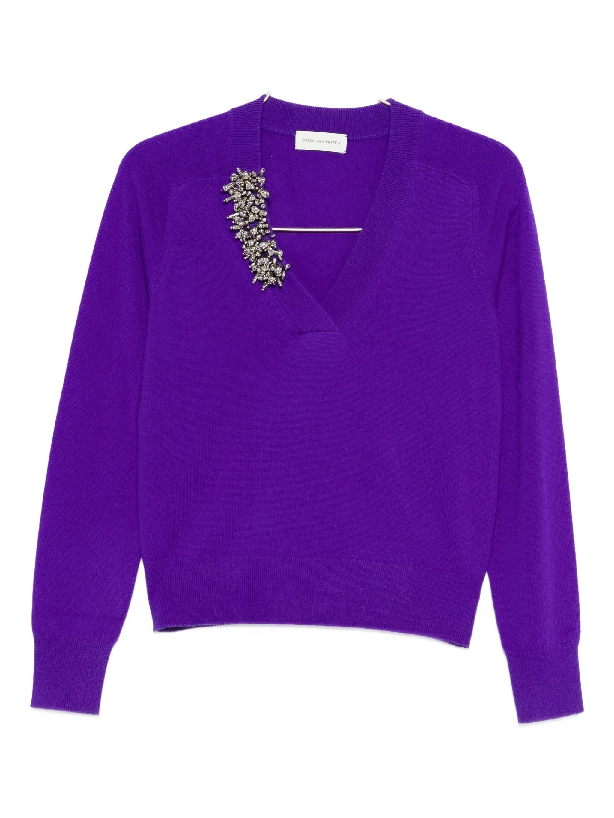 purple neck embellishment v-neck long sleeves ribbed cuffs and hem - Color: PURPLE - Made in: Bangladesh - Designer Style ID: 2704 011223 401 Composition and care Fabric: 100.0%