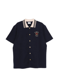 navy blue embroidered detail short sleeves button fastening striped collar - Made in: Portugal - Designer Style ID: J-SH247 CO264 NAVY Composition and care Cotton: 100.0%