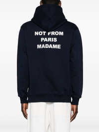 navy blue cotton jersey texture slogan print at the chest embroidered slogan to the rear drawstring hood drop shoulder long sleeves front pouch pocket ribbed cuffs and hem - Color: BLUE - Made in: Portugal - Designer Style ID: PERM-HO162 CO127 NAVY Composition and care Cotton: 100.0%