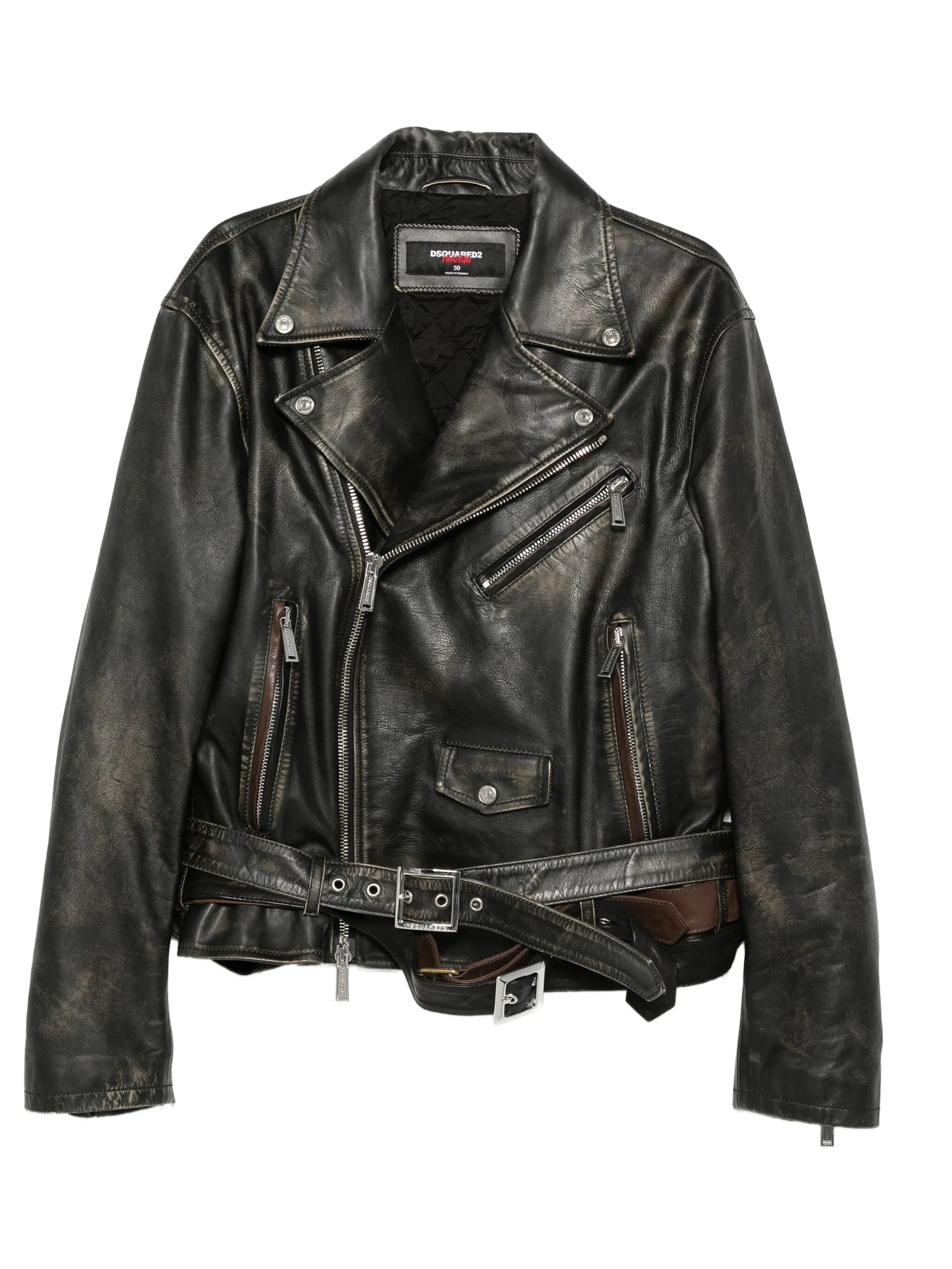 black calf leather zip fastening belted waist zip pockets silver-tone hardware - Color: BLACK - Made in: Romania - Designer Style ID: SY1512 S71AN0638 143 Composition and care Outer Composition Calf Leather: 100.0%, Lining Composition Viscose: 100.0%