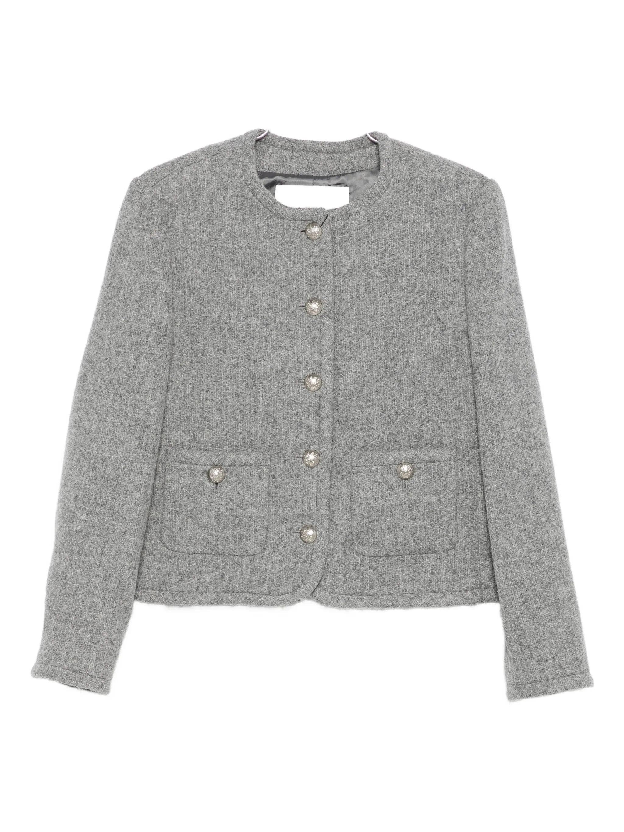 melange grey textured weave button fastening patch pockets metallic buttons round neckline - Color: GREY - Made in: Viet Nam - Designer Style ID: UDJA5C203G2 MELGR Composition and care Lining Composition Polyester: 100.0%, Outer Composition Wool: 89.0%, Outer Composition Alpaca: 11.0%