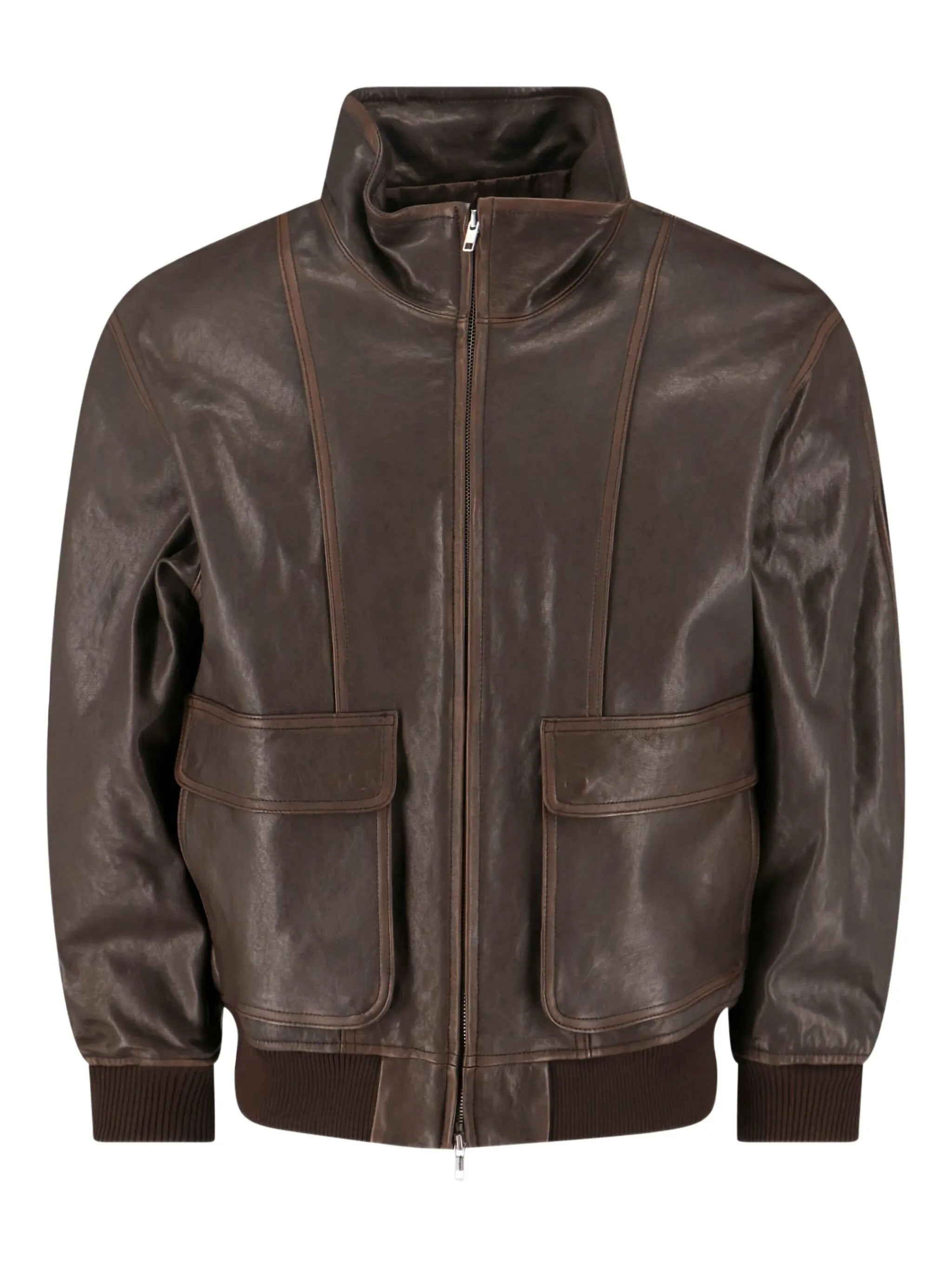 dark brown lambs leather zip fastening high neck flap pockets panelled design - Color: BROWN - Made in: Bangladesh - Designer Style ID: UDJU5C103W3 DABRO Composition and care Lambskin: 100.0%
