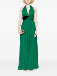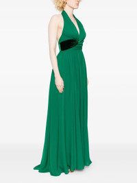 green V-neck velvet detail A-line skirt - Color: GREEN - Made in: Bangladesh - Designer Style ID: D0837 GREEN Composition and care Outer Composition Silk: 98.0%, Lining Composition Silk: 100.0%, Outer Composition Rayon: 2.0%