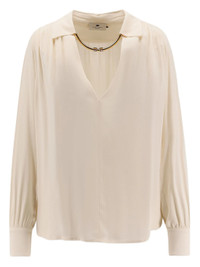 off-white V-neck gathered detailing at shoulders long sleeves buttoned cuffs gold-tone metal collar - Color: WHITE - Made in: Bangladesh - Designer Style ID: CA12356E2 DZ9 Composition and care Viscose: 100.0%