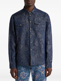 Etro COTTON AND LINEN JACQUARD DENIM SHIRT WITH LEAFY PAISLEY MOTIF