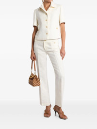 beige linen Pegaso buttons short sleeves cropped - Color: NEUTRALS - Made in: Italy - Designer Style ID: 99TU3F4 WRCA0111 W0001 Composition and care Outer Composition Linen/flax: 100.0%, Outer Composition Acetate: 12.0%, Lining Composition Acetate: 48.0%, Lining Composition Viscose: 52.0%, Outer Composition Mohair: 33.0%, Outer Composition Wool: 55.0%