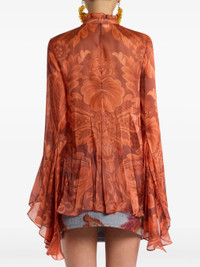 red pleated detailing floral print button fastening ruffled collar bell sleeves - Color: RED - Made in: Italy - Designer Style ID: 99SA1K2 WRIA0090 X0852 Composition and care Silk: 100.0%